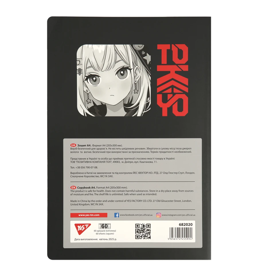 Тетрадь Yes Tokyo А4 60 листов с высечкой клетка