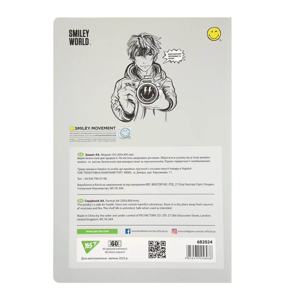 Тетрадь Yes Smiley World Anime А4 60 листов с высечкой клетка