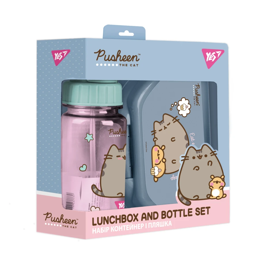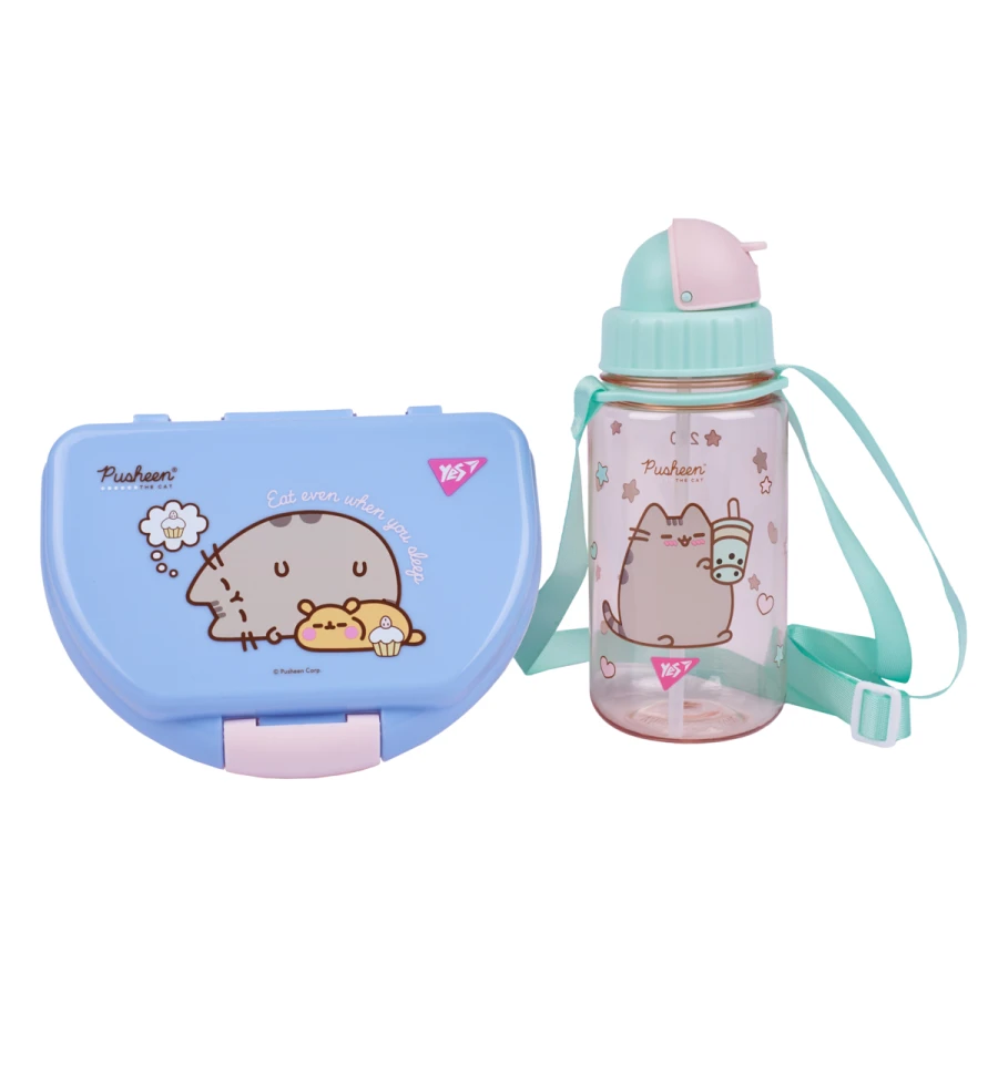 Набор бутылка и ланч-бокс с любимым персонажем Pusheen.