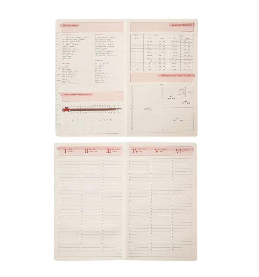 Бумажный блок продуман до мелочей для комфортного ежедневного использования. Он насчитывает 352 страниц, что обеспечивает достаточно пространства для ежедневных записей, планов и заметок. Бумага плотностью 80 г/м² позволяет комфортно писать ручкой либо карандашом без просвечивания. Кремовая бумага не утомляет глаза даже при длительной работе. Закругленные углы бумажного блока не только добавляют стильный вид, а и предотвращают быстрый износ страниц. Это практическое решение для сохранения делового планинга аккуратным в ежедневном использовании. Перфорированные углы бумажного блока позволяют легко маркировать актуальную страницу. Это удобный функциональный элемент, который позволяет быстро ориентироваться в записях и держать планирование под контролем. Цветной бумажный срез добавляет дизайнерский акцент и визуальную выразительность. Сдержанное решение для тех, кто ценит оригинальность.
