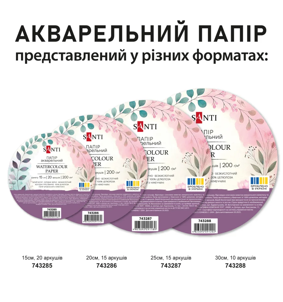 Основные характеристики бумаги для акварели ТМ SANTI: