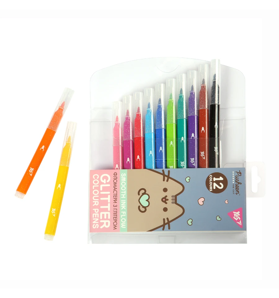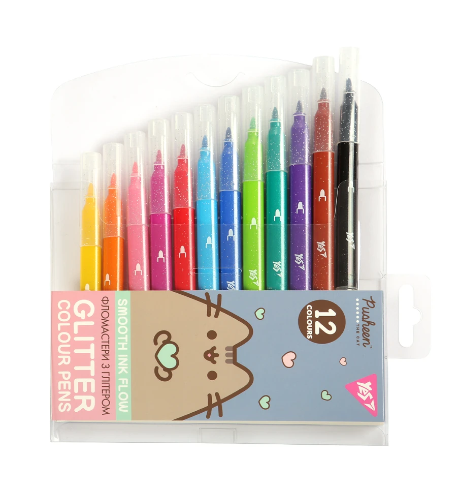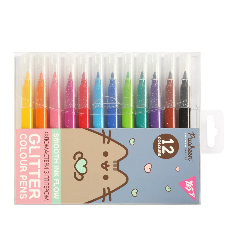 Фломастеры Yes Pusheen 12 цветов глиттер