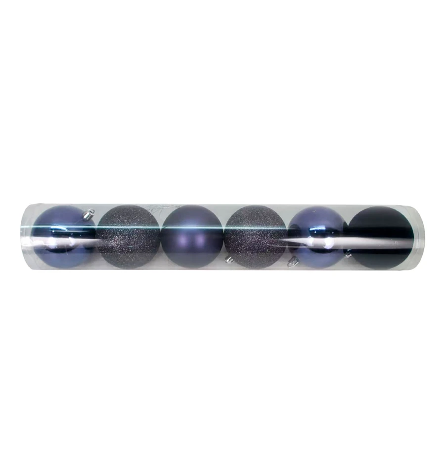 Набор новогодних шаров Yes! Fun пластик 8см, 6 штук в тубусе, фиолетово-синий