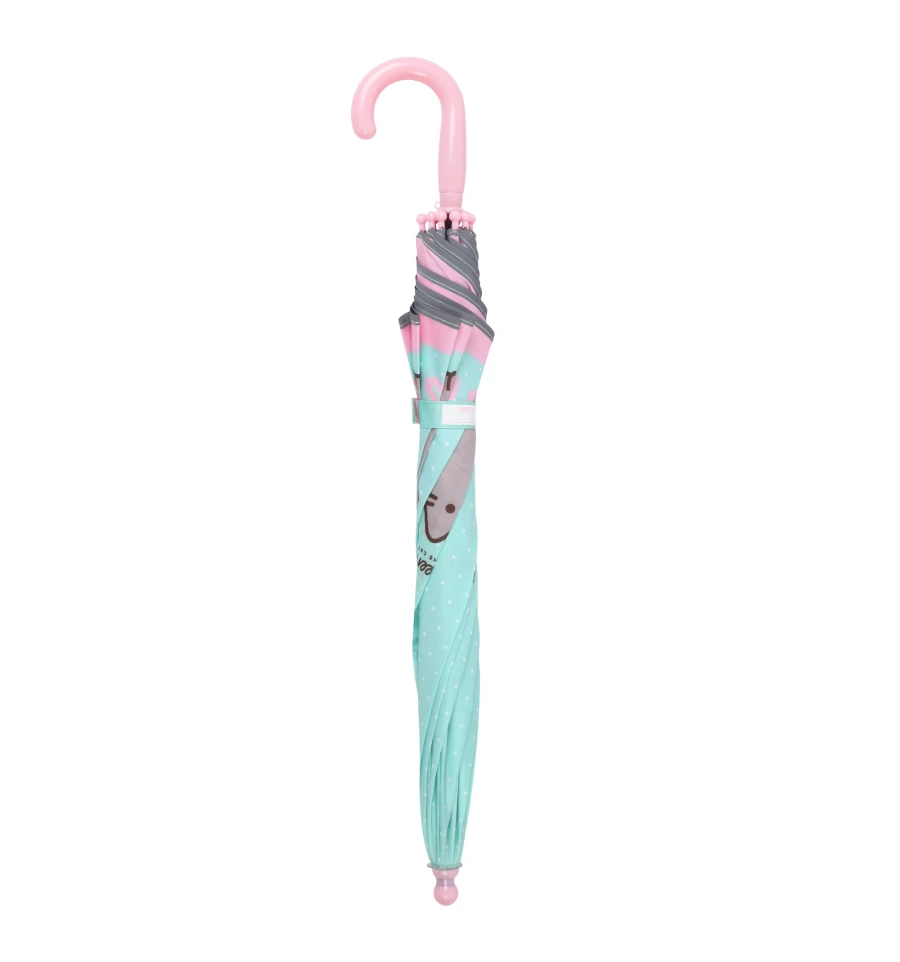 Зонт легкий, удобный и выполнен из качественных материалов. Купол изготовлен из прочного водоотталкивающего полиэстера, каркас из 8 усиленных карбоновых спиц устойчив к порывам ветра. Каждая деталь продумана до мелочей: аккуратные швы, прочные застежки и надежная конструкция. Удобная пластиковая ручка-крюк отлично подходит для детской руки и позволяет подвешивать зонт при хранении. Для безопасности ребенка концы спиц защищены пластиковыми наконечниками.