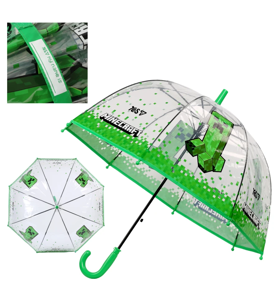 С детским зонтом Yes Minecraft с именной биркой и прозрачным куполом ваш ребенок будет чувствовать себя уверенно и комфортно — прозрачный купол не закрывает обзор, легко узнает свои вещи и с удовольствием будет гулять даже в пасмурную погоду.