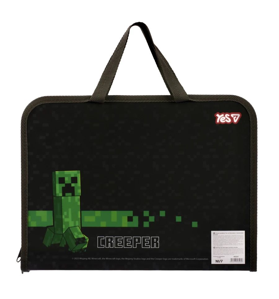 Основные свойства пластикового портфеля торговой марки Yes "Майнкрафт" формата FC на молнии: