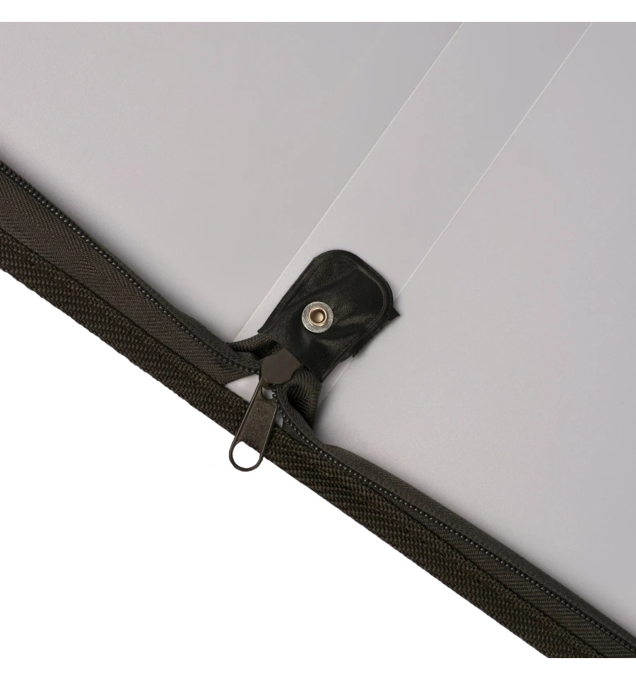 - Комфорт в использовании за счет удобной молнии, надежно фиксирующей содержимое папки.