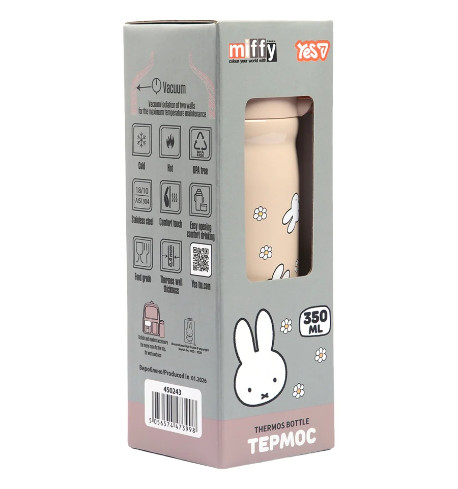 Термос из коллекции "Miffy" перенесет вас в мир уюта и тепла. С изображением милого кролика вы всегда будете окружены позитивом.