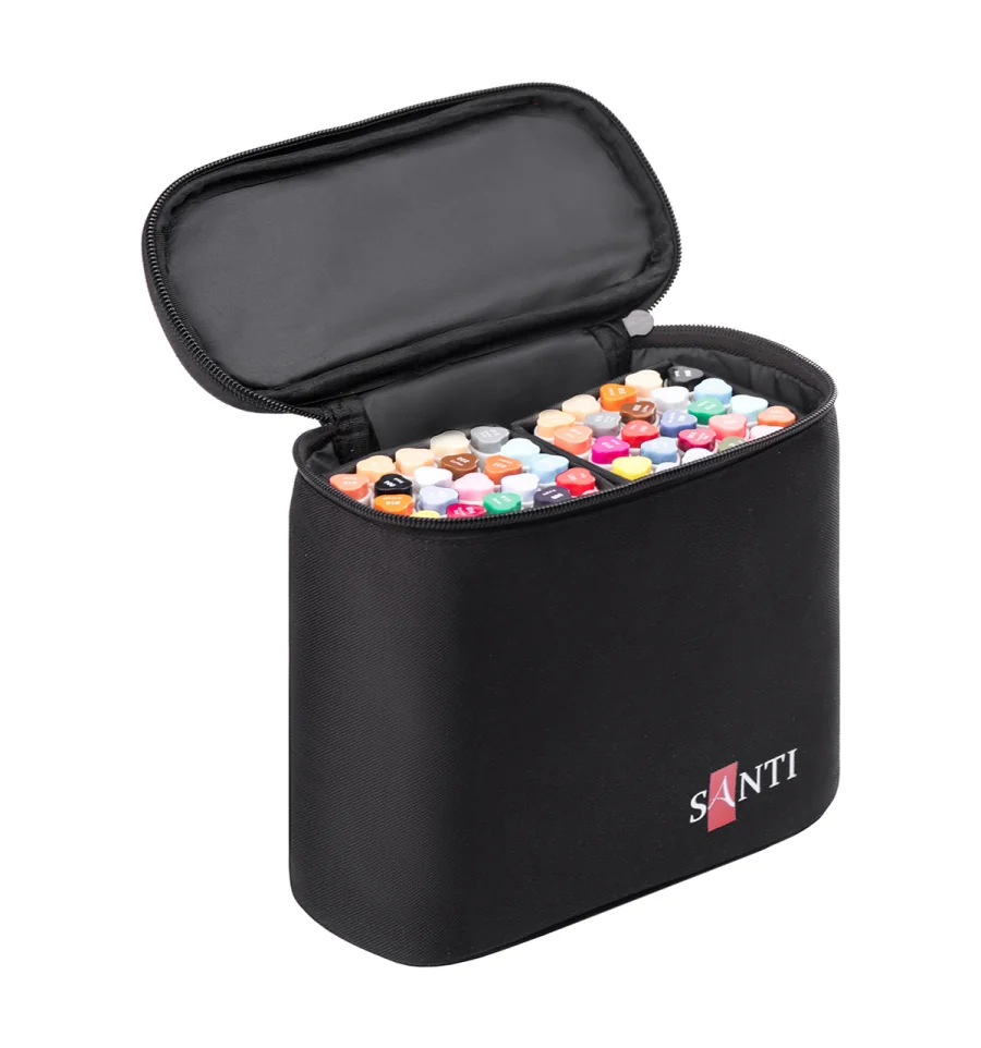 Пенал предназначен для хранения и транспортировки маркеров. Оборудован двумя жесткими каркасными отделениями для удобного хранения, транспортировки и использования 50 маркеров. В каждом отделение может храниться до 25 маркеров. Также в пенале можно разместить и другие художественные материалы: карандаши, кисти, линеры. Размер пенала: 170*195*85 мм., 1 отделение и две каркасные вкладки. Материал: полиэстер.