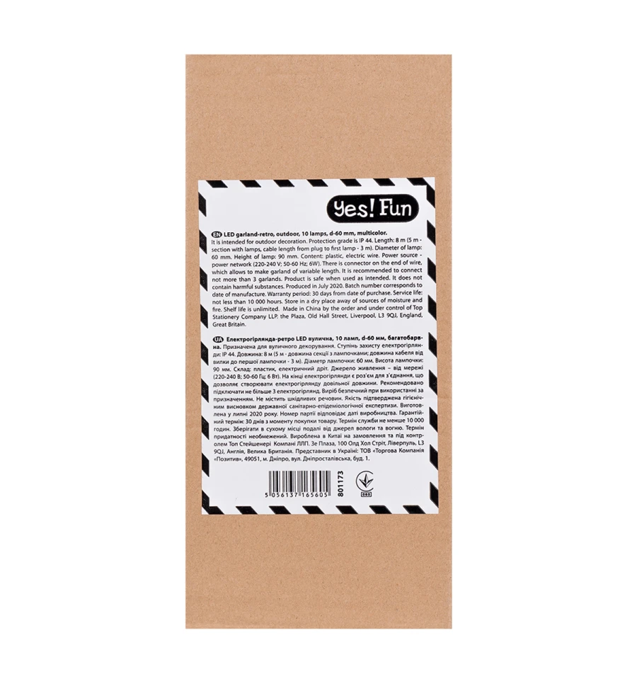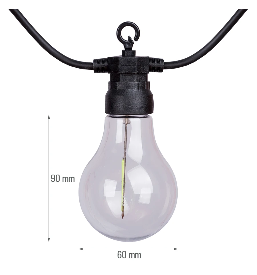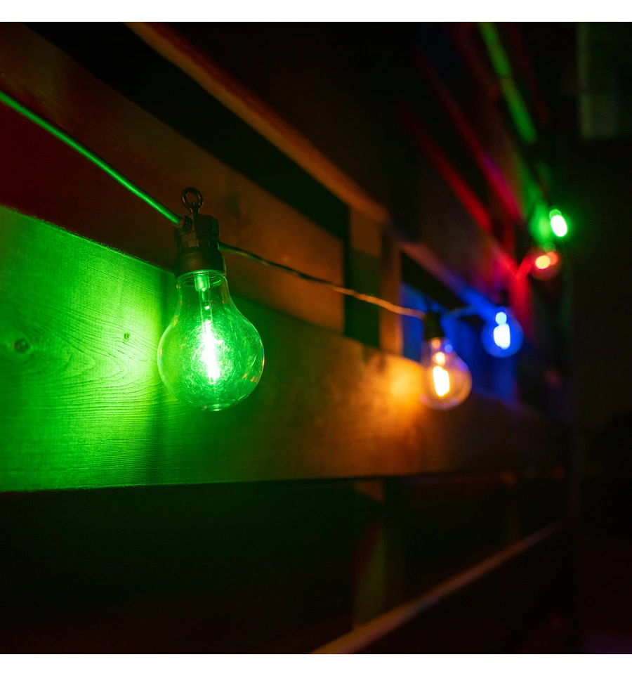 Электрогирлянда-ретро используется для интерьерного и уличного декорирования. Цвет светящихся лампочек: многоцветный; диаметр - 60 мм; высота — 90 мм. Количество лампочек: 10 шт.. Степень защиты электрогирлянды IP 44. Длина провода: 8 м (5 м — секция с лампочками, 3 м — длина кабеля). Состав: пластик, электрический провод. Источник питания: от сети (220-240 В, 50-60 Гц, 6 Вт). В конце электрогирлянды есть разъем для соединения, который позволяет создавать электрогирлянду произвольной длины. Рекомендуется подключать не более 3 шт..