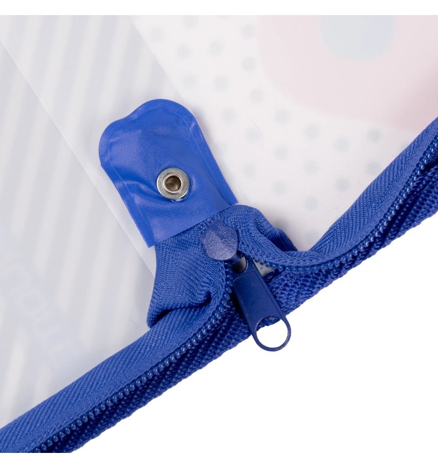 - Папка фиксируется в закрытом положении молнией;