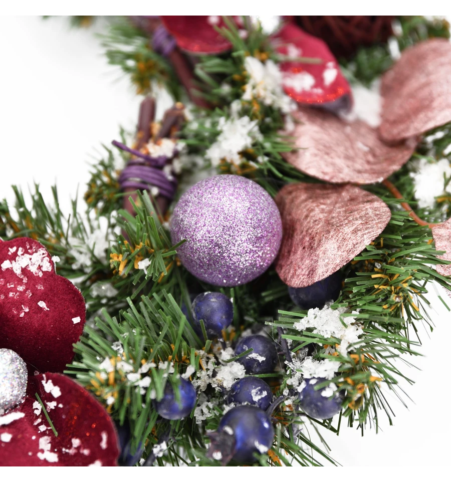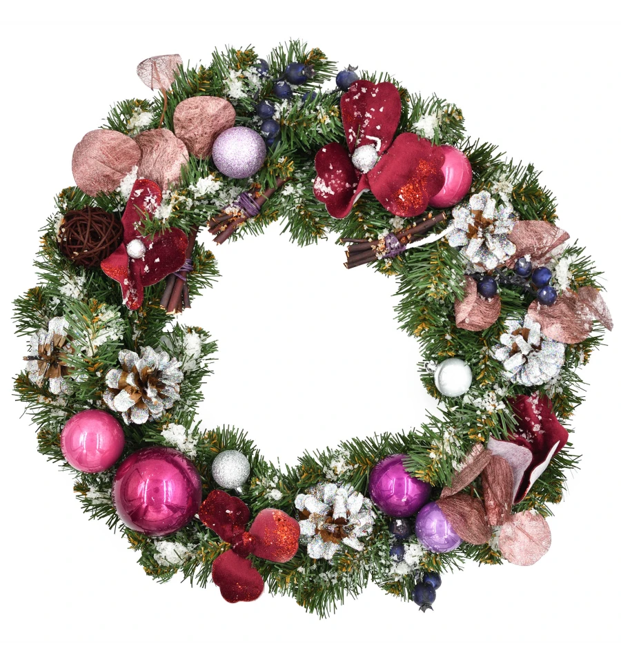 Элегантный рождественский венок "Камелия" в нежных тонах турецкой розы придаст Вашему интерьеру изысканность и праздничное настроение, а заснеженные элементы, серебряный блеск добавляют сказочность.