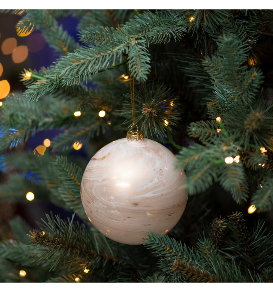 Новогодний шар Novogod‘ko, стекло, 10 см, белый, матовый, мрамор