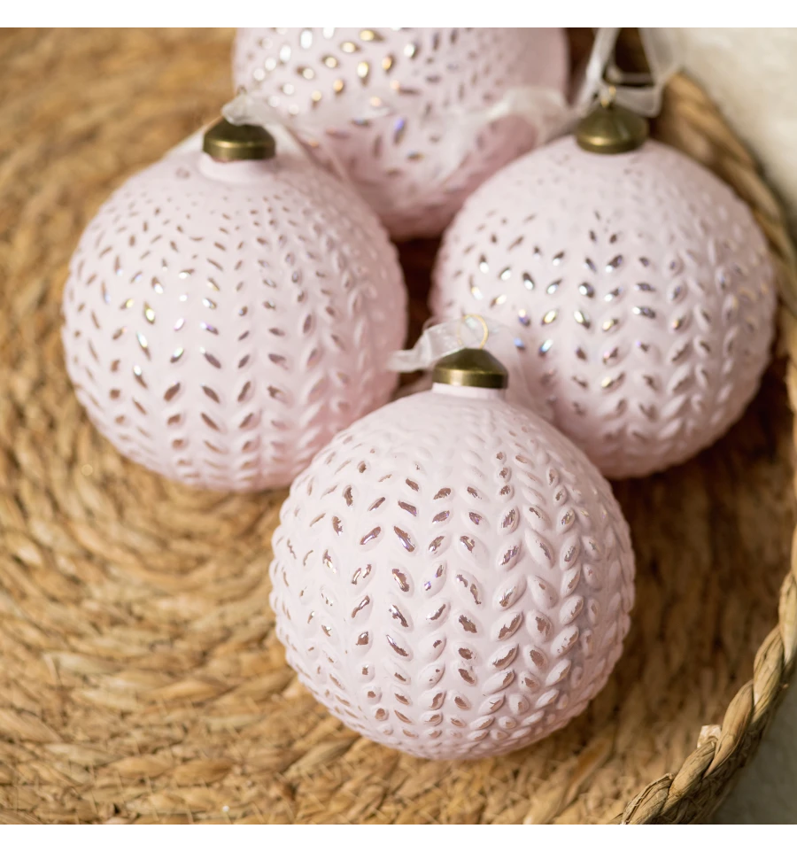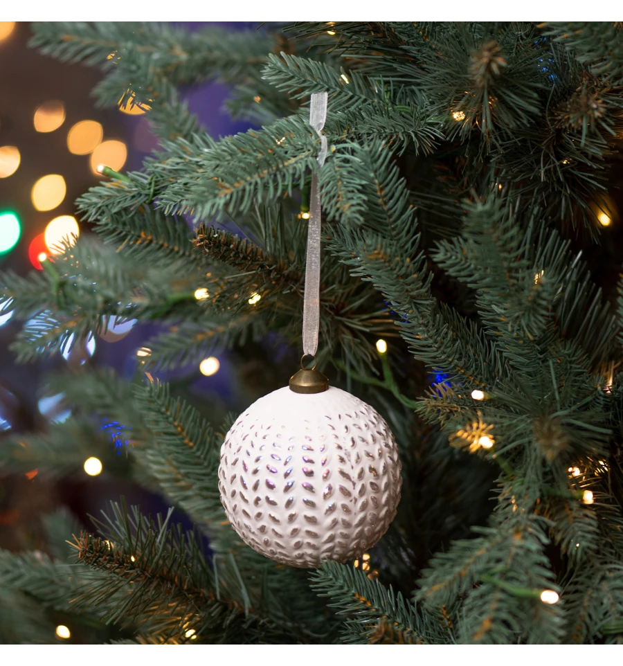 Новогодний шар Novogod‘ko, стекло, 10 см, белый, матовый, орнамент