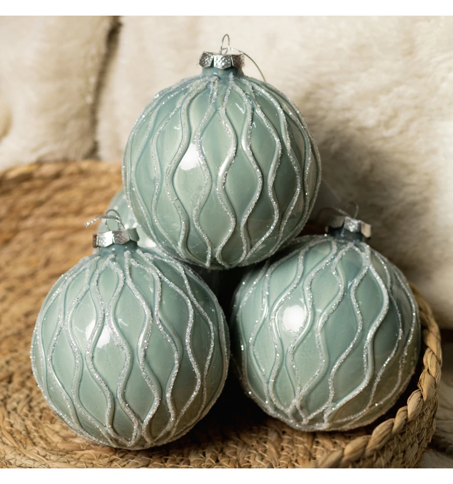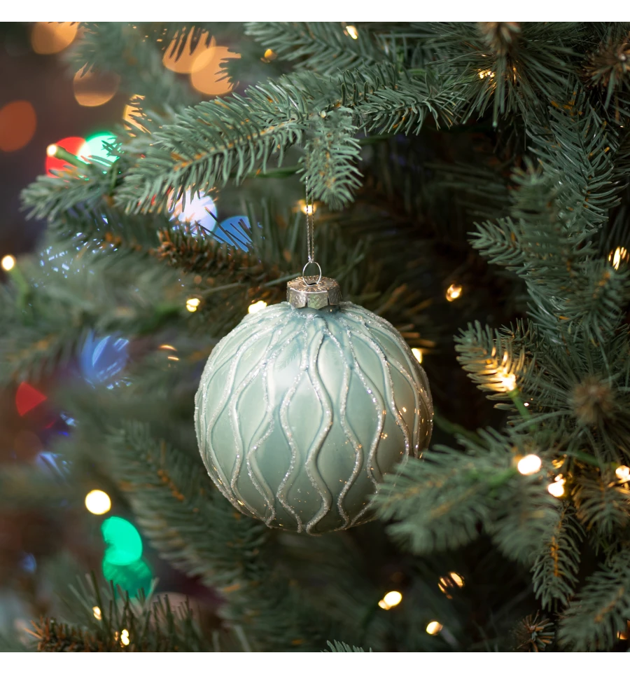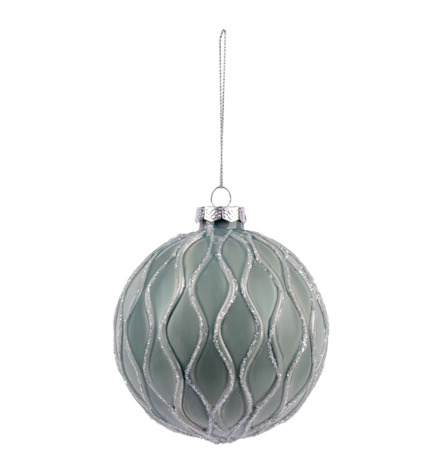 Новогодний шар Novogod‘ko, стекло, 10 см, св.зеленый, глянец, орнамент