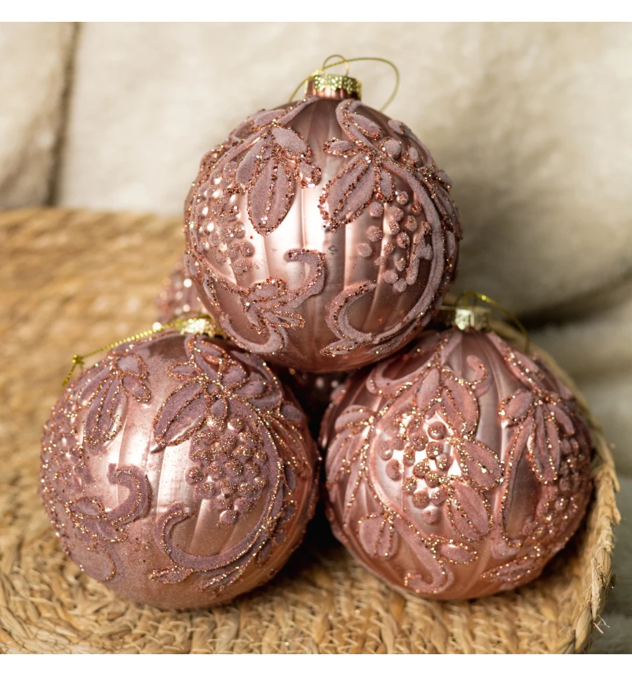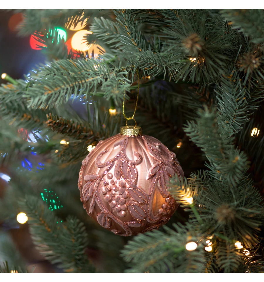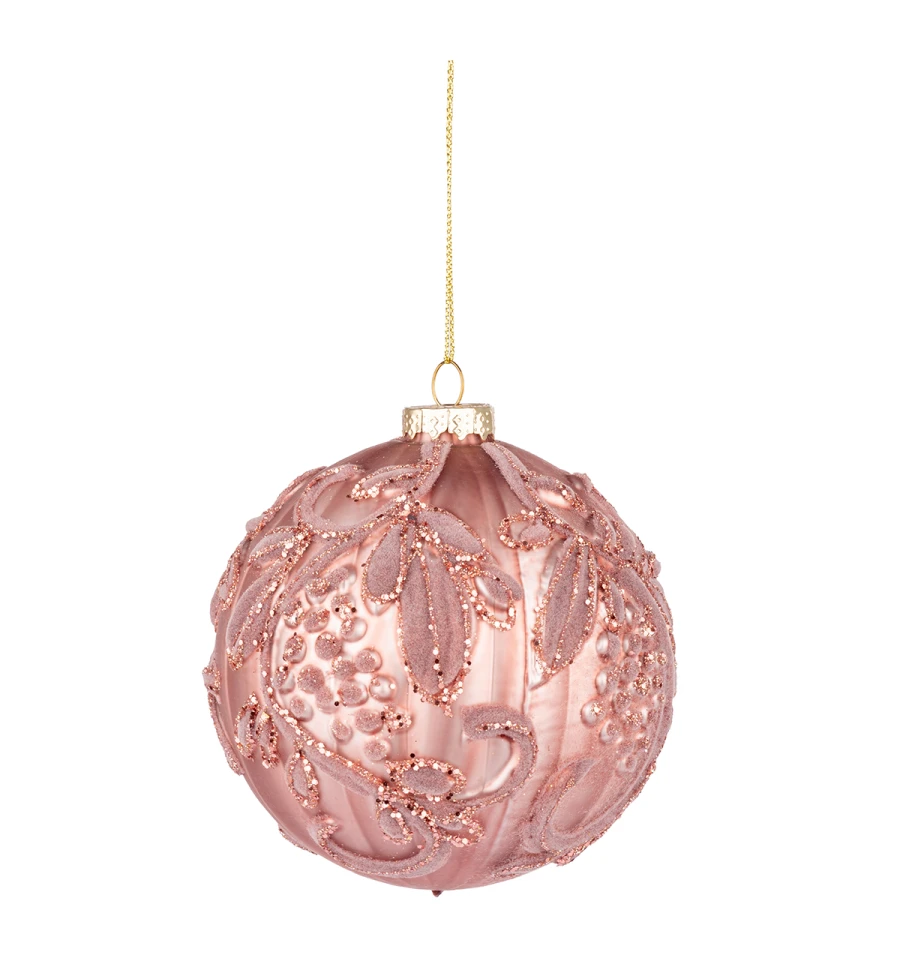Новогодний шар Novogod‘ko, стекло, 10 см, св.розовый, матовый, орнамент