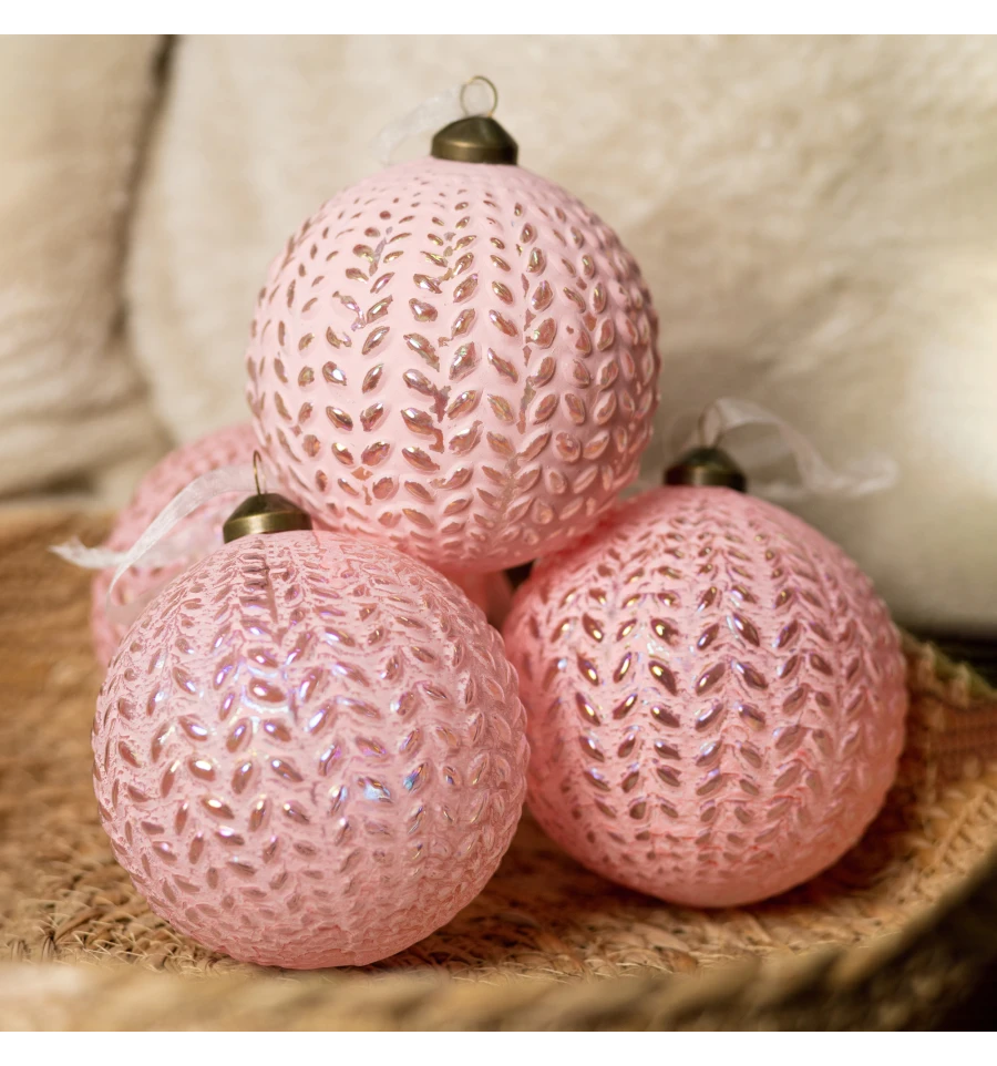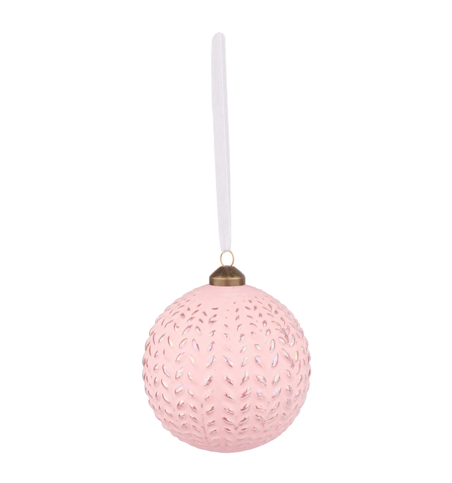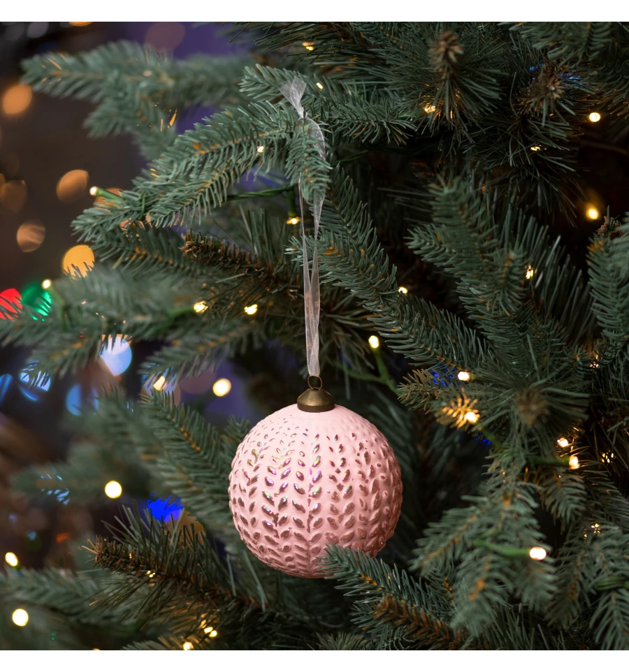 Новогодний шар Novogod‘ko, стекло, 10 см, светло-розовый, матовый, орнамент