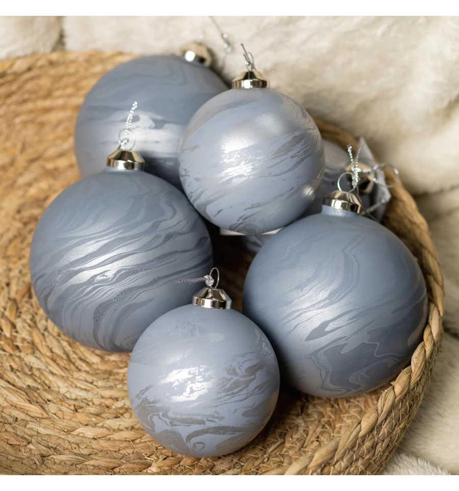 Новогодний шар Novogod‘ko, стекло, 10 см, синий, матовый, мрамор