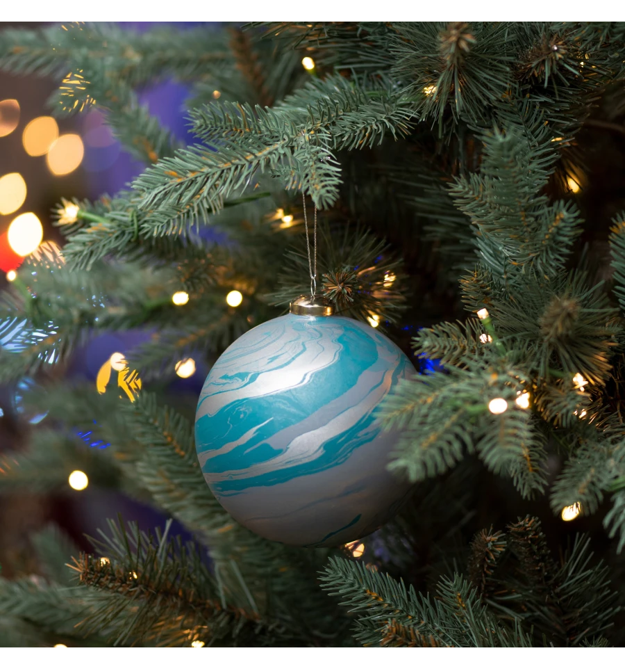 Новогодний шар Novogod‘ko, стекло, 12 см, голубой, матовый, мрамор