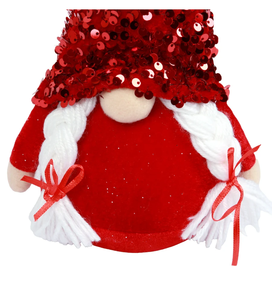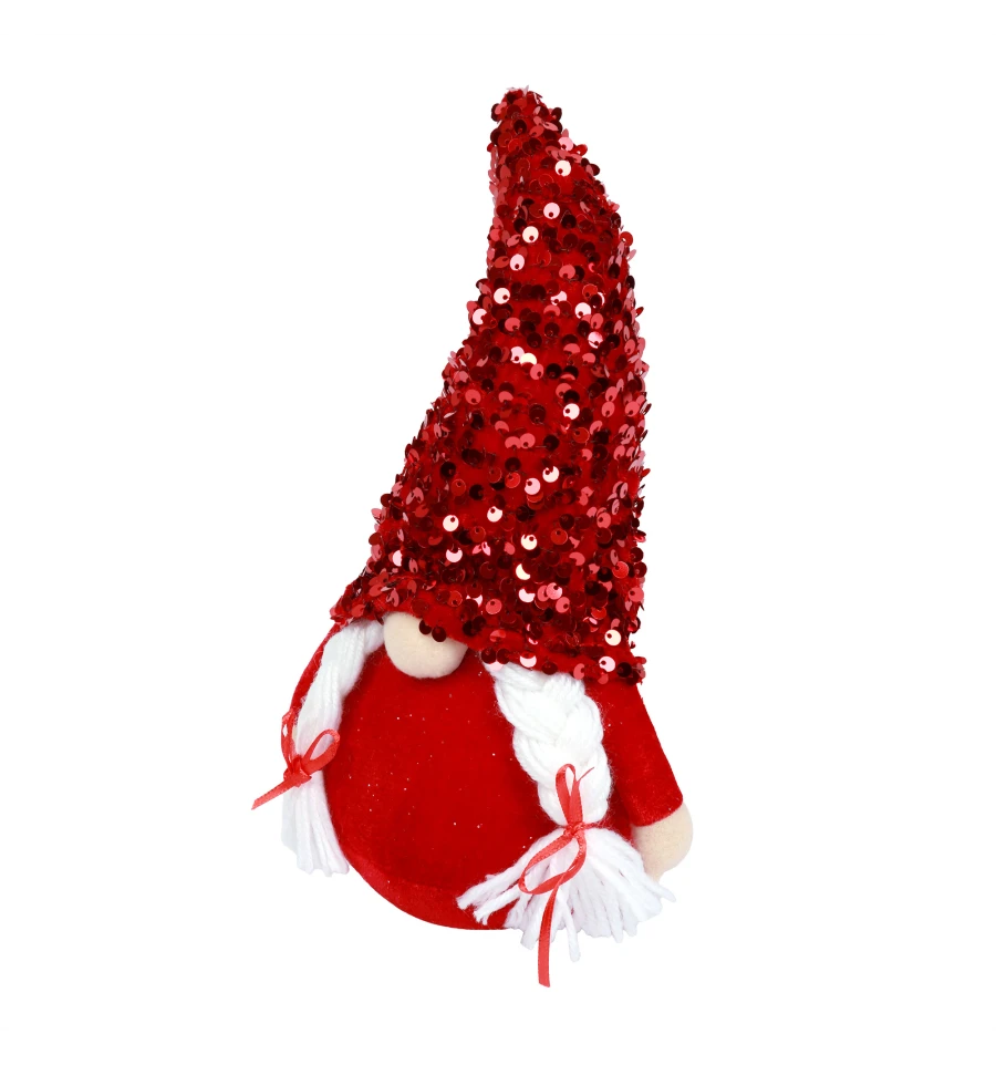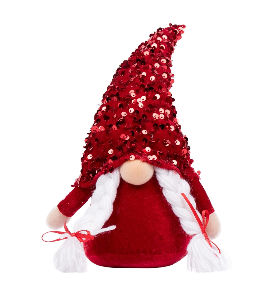 Новогодняя мягкая игрушка Гном девочка в колпаке с красной пайеткой TM Novogod‘ko — это очаровательная хранительница домашнего уюта, которая наполнит ваш дом теплом и светом зимних праздников. Её колпачок, украшенный сверкающими красными пайетками, красиво отражает свет гирлянд и свечей, создавая эффект праздничного сияния. Белые длинные косички с аккуратными бантиками придают образу нежности и очарования. Она идеально впишется в любой новогодний интерьер — будет чудесно смотреться под ёлкой, на камине, на полочке или как часть праздничной композиции.