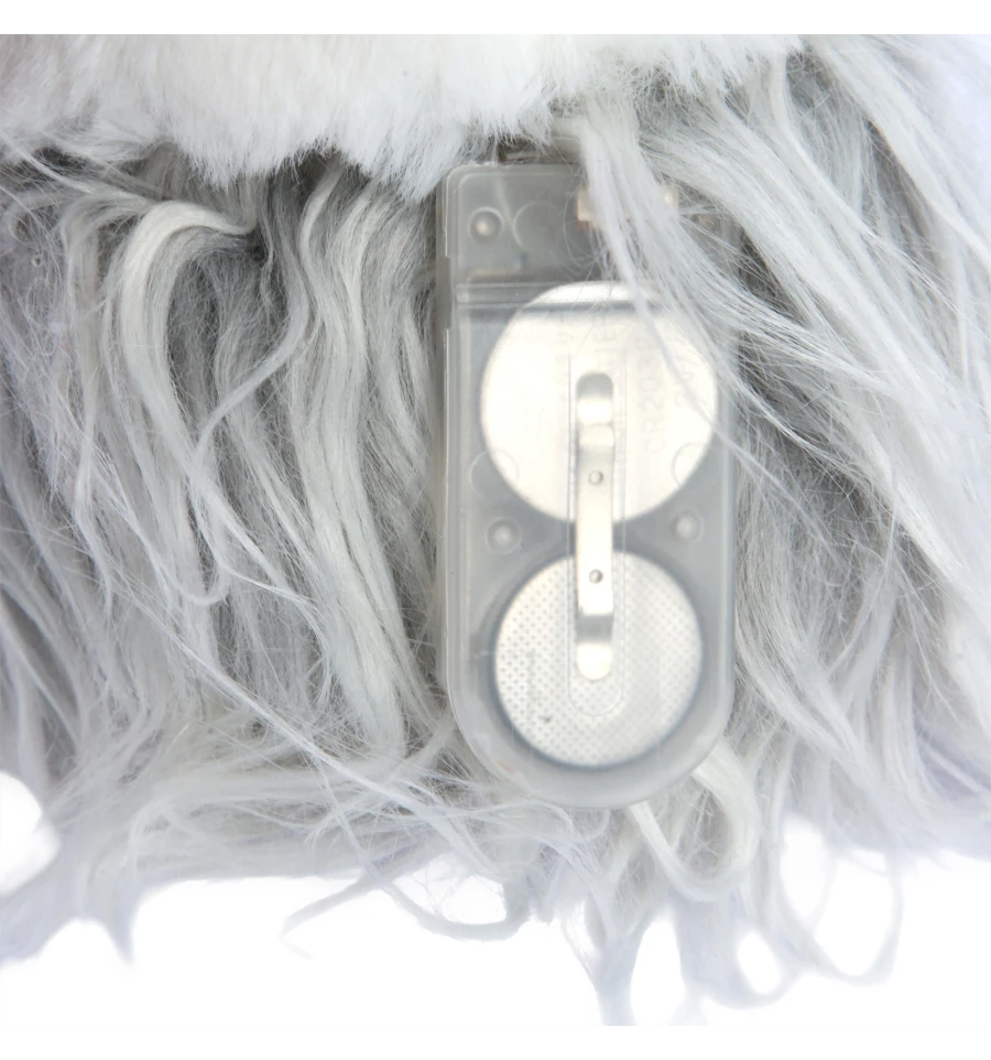 Особенную магию игрушке придаёт LED-подсветка носика, которая мягко светится тёплым сиянием. Игрушку можно использовать не только как декор, но и как ночник. Тёплый свет создаёт атмосферу спокойствия и умиротворения — идеальное дополнение к зимним рождественским вечерам. Подсветка работает от двух батареек CR2032 (демонстрационные уже установлены). Выключатель расположен на спинке гнома, оставаясь незаметным.