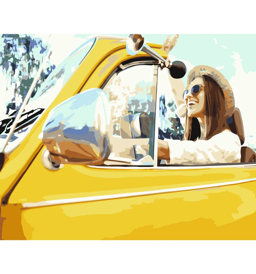 Картина по номерам ПРЕМИУМ Желтый кабриолет с лаком размером 40х50 см VA-3189 купить в интернет магазине подарков ПраздникШоп