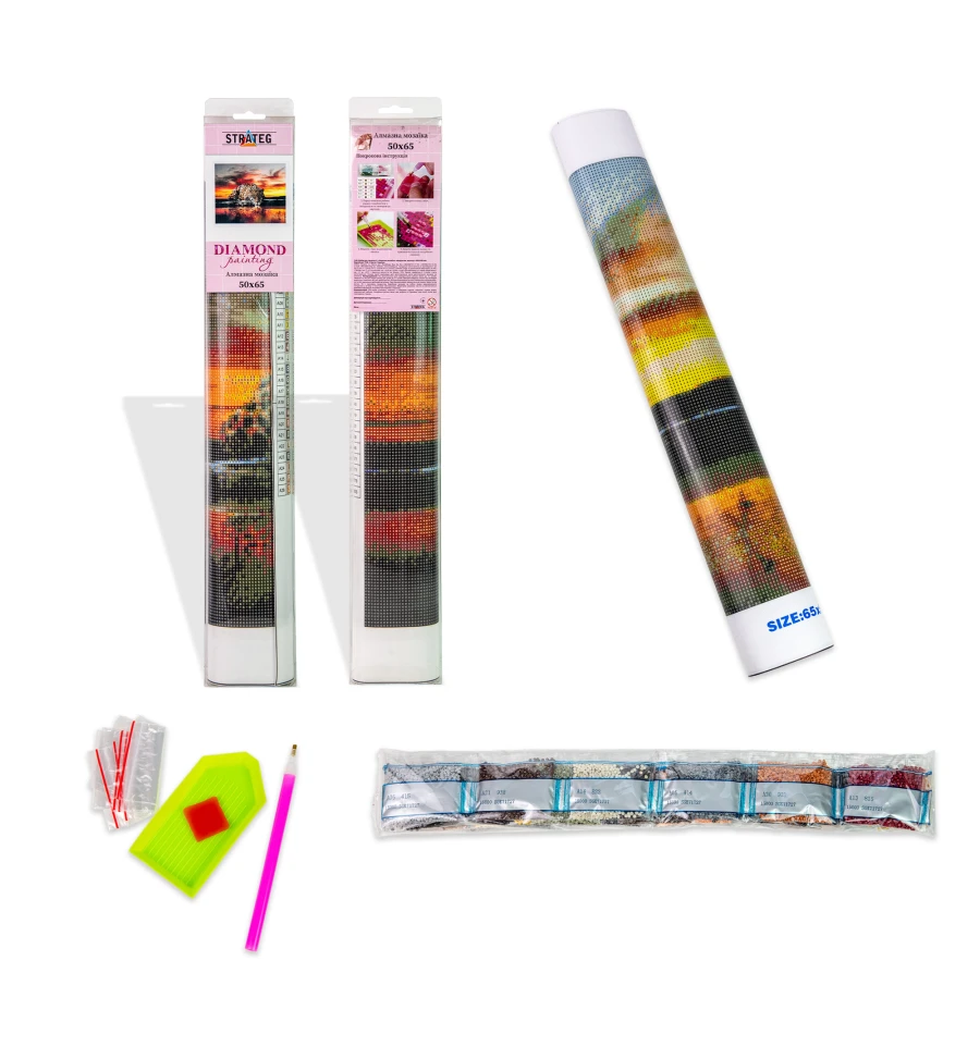 Алмазная мозаика - уникальное сочетание красоты готового изделия и простоты его создания.Чтобы создать настоящий шедевр, который украсит ваше жилье или станет достойным подарком, надо только приклеивать акриловые стразы в нужном порядке на хлопковое полотно.Вам нужно только смотреть на схему и аккуратно и тщательно выполнить порядок действий в инструкции.Набор состоит из следующих составляющих:♦ акриловые камни-стразы разного цвета;стилус для выкладывания стразов; ♦ стилус для выкладывания стразов;♦ гель-клей;лоток для сортировки камней; ♦ лоток для сортировки камней;♦ инструкция;♦ хлопковое полотно с клеевым слоем;Алмазная картина - хороший подарок для тех, кто любит создавать красоту собственными руками!Внимание! Цвет стразов может отличаться от цвета на фото благодаря компьютерной обработке фото на сайте.