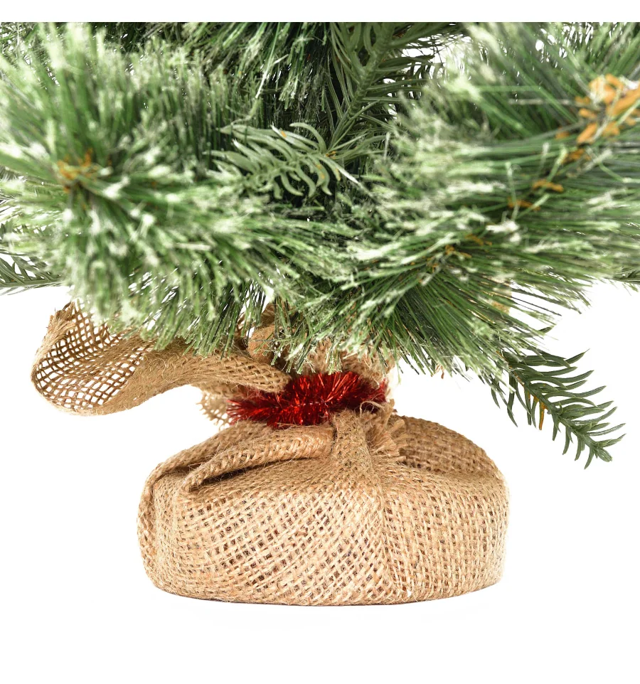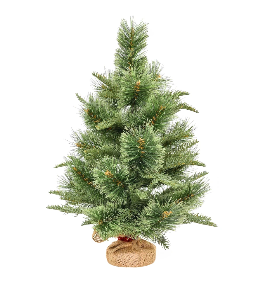 Искусственная маленькая сосна – отличный декор для помещения в период новогодних праздников, который можно использовать, украшая множество поверхностей в доме, офисе, в торговых центрах. Поставив такую сосну на столе, полке, тумбочке, на прилавке магазина, в прикассовой зоне – праздничное настроение окружающим будет гарантировано. Компактность и качественное исполнение данного украшения – это и есть его главные преимущества. Материал: ПВХ пленка шириной 10 см; проволока; деревянный пенек, обтянутый мешковиной. Высота: 60 см. Диаметр нижнего ряда: 40 см. Габариты: 0,60 м.