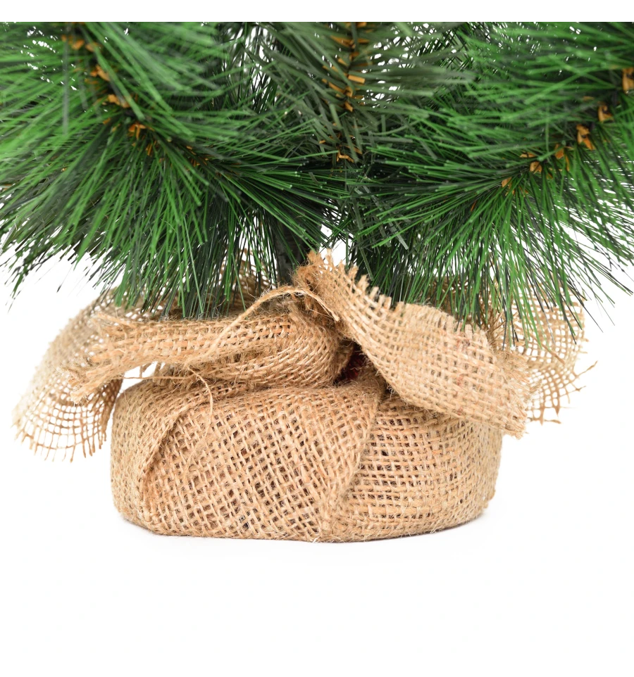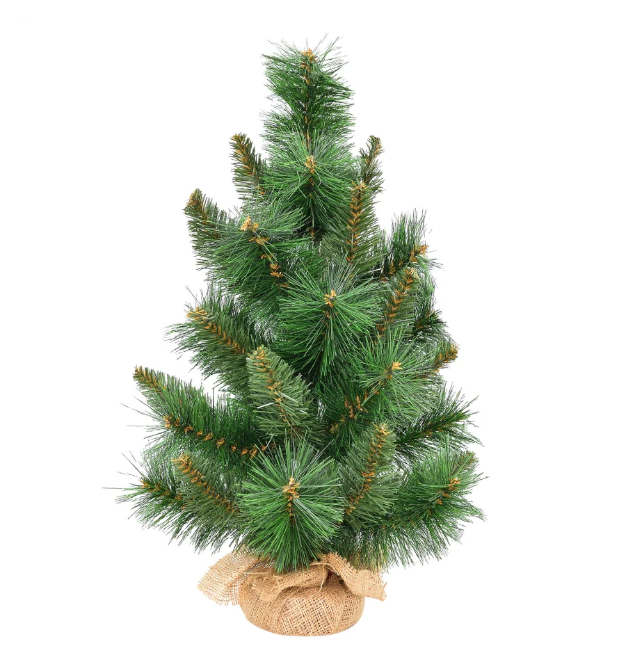 Искусственная маленькая сосна – отличный декор для помещения в период новогодних праздников, который можно использовать, украшая множество поверхностей в доме, офисе, в торговых центрах. Поставьте такую ель на столе, полке, тумбочке, на прилавке магазина, в прикассовой зоне – и праздничное настроение окружающим будет гарантировано. Компактность и качественное исполнение данного украшения – это и есть его главные преимущества. Материал: ПВХ пленка шириной 8,5 см, 10 см; проволока; деревянный пенек, обтянутый мешковиной. Высота: 60 см. Диаметр нижнего ряда: 40 см. Габариты: 0,60 м.