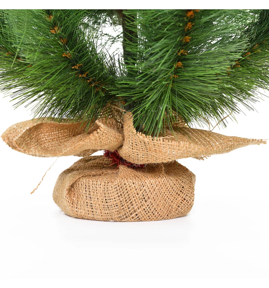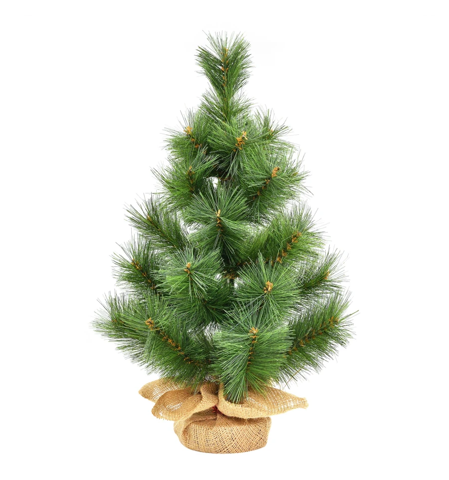 Искусственная маленькая сосна – отличный декор для помещения в период новогодних праздников, который можно использовать, украшая множество поверхностей в доме, офисе, в торговых центрах. Поставив такую сосну на столе, полке, тумбочке, на прилавке магазина, в прикассовой зоне – праздничное настроение окружающим будет гарантировано. Компактность и качественное исполнение данного украшения – это и есть его главные преимущества. Материал: ПВХ пленка шириной 10 см; проволока; деревянный пенек, обтянутый мешковиной. Высота: 60 см. Диаметр нижнего ряда: 34 см. Габариты: 0,60 м.