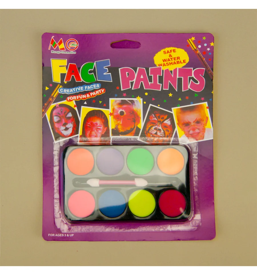 Создать веселый или грустный образ на тематической вечеринке, маскараде или утреннике поможет красочный грим. Грим палитра 8 цветов в ярких кислотных оттенках подчеркнут характер обладателя и без проблем поднимут настроение окружающим. В комплекте в палитре прилагается 1 двухсторонняя кисть-аппликатор для нанесения грима. Купить оригинальный подарок из каталога интернет-магазина PrazdnikShop можно не только ребенку для праздничной окраски лица на детском мероприятии, а немного фантазии и капелька воображения… И взрослый серьезный человек легко превращается в озорного непоседу с яркой искоркой на лице. Рекомендуемый возраст для использования от 3-х лет. Краска мягко ложится на кожу и очень легко бесследно смывается. Для снятия макияжа удалите излишки салфеткой или ватным тампоном, затем промойте с мылом, очищающим лосьоном и теплой водой. У некоторых детей чувствительная кожа. Пожалуйста, проверьте предварительно на небольшом участке кожи, прежде чем наложить полноценный грим. Эти продукты разработаны, чтобы быть безопасными и безвредными, однако в случае возникновения побочных реакций немедленно прекратите использование и обратитесь к врачу. Рекомендуем использовать грим только под наблюдением взрослых и хранить палетку с гримом в недоступном для детей месте.