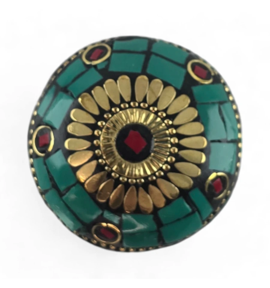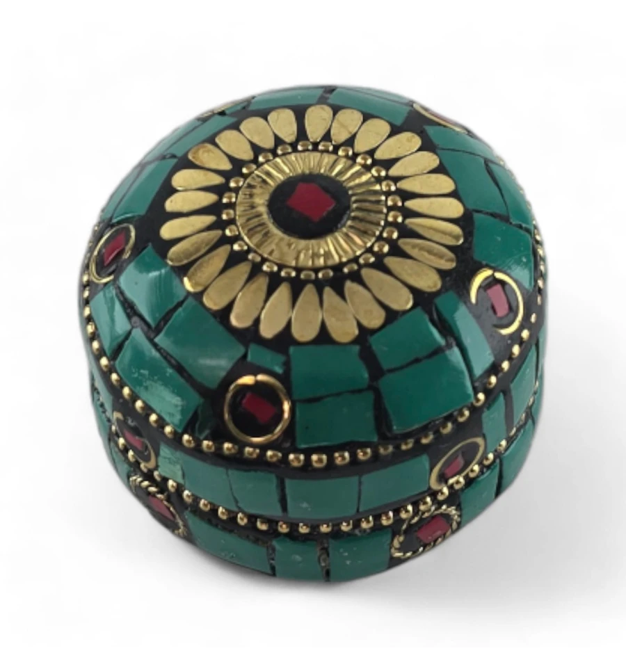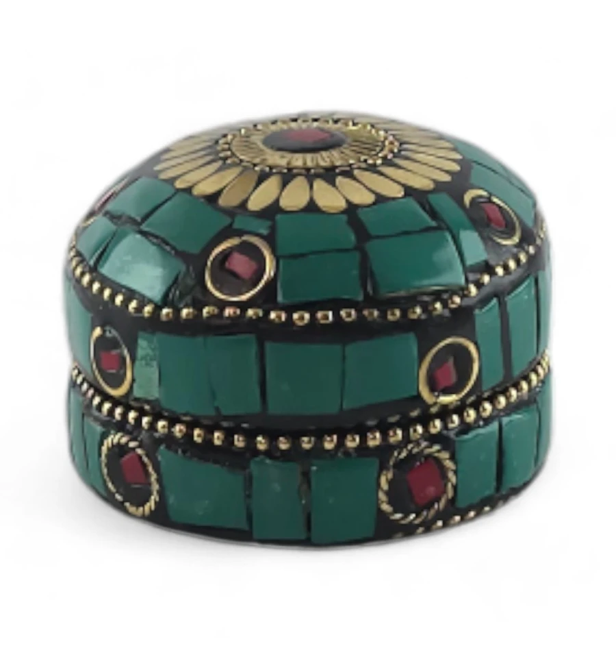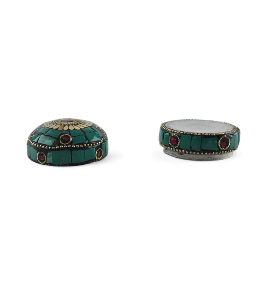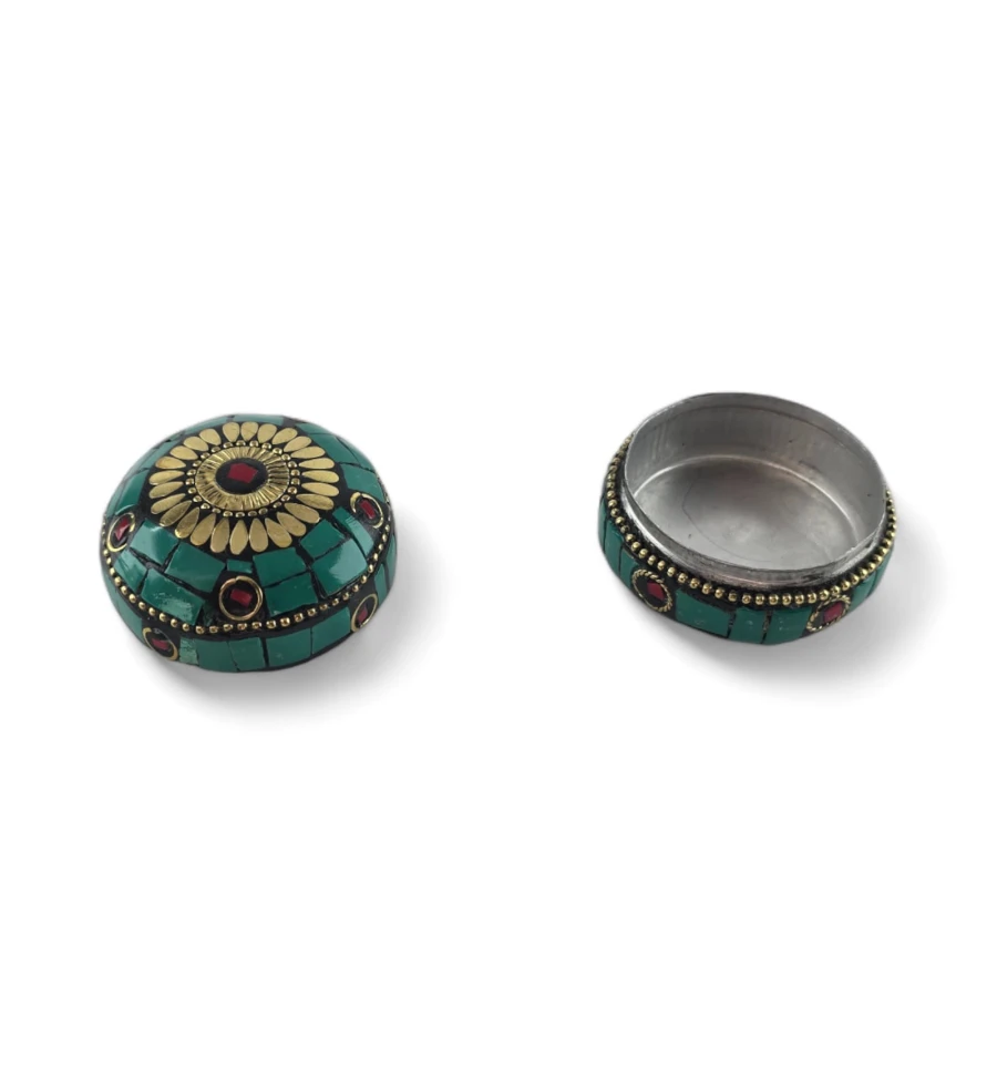 Шкатулка металлическая с бирюзой и кораллами ( h-3,2; d-4,7 см)