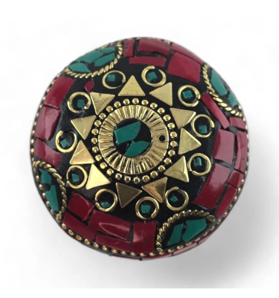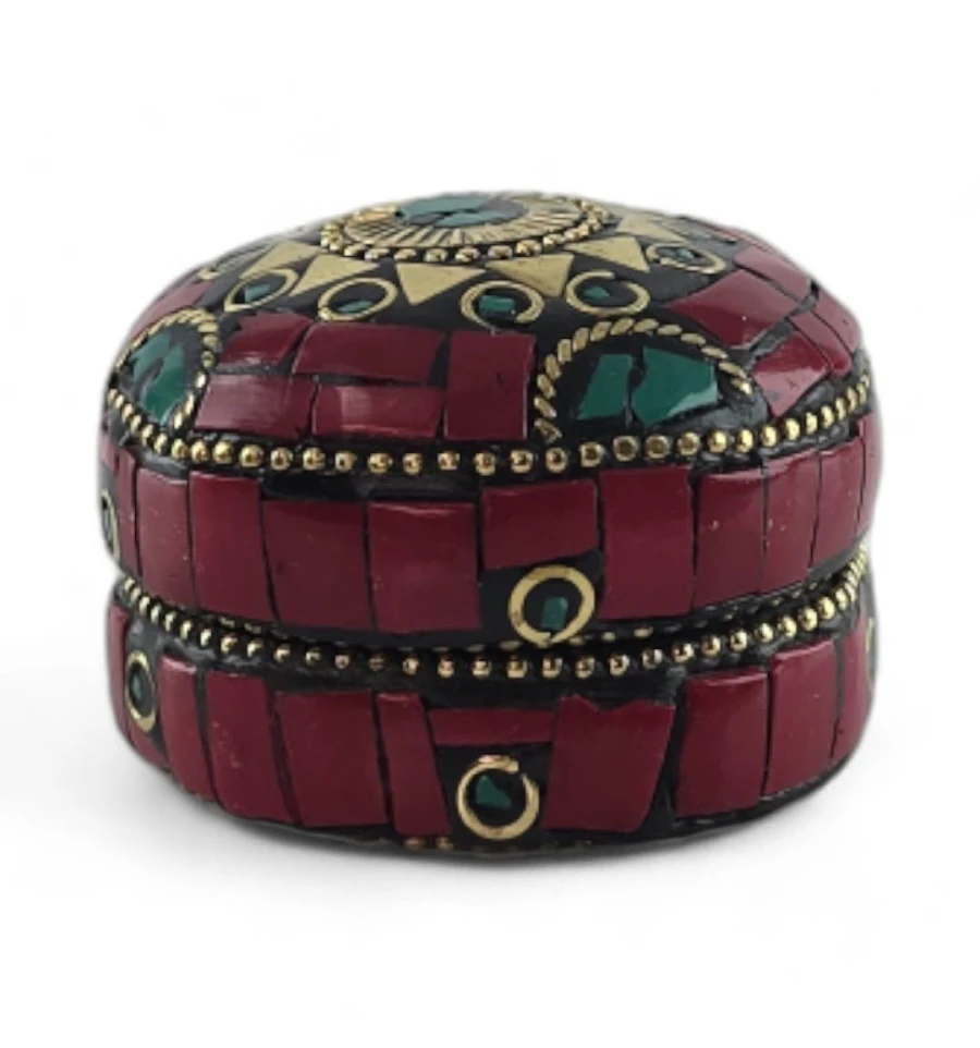 Шкатулка металлическая с кораллами и бирюзой ( h-3,2; d-4,7 см)