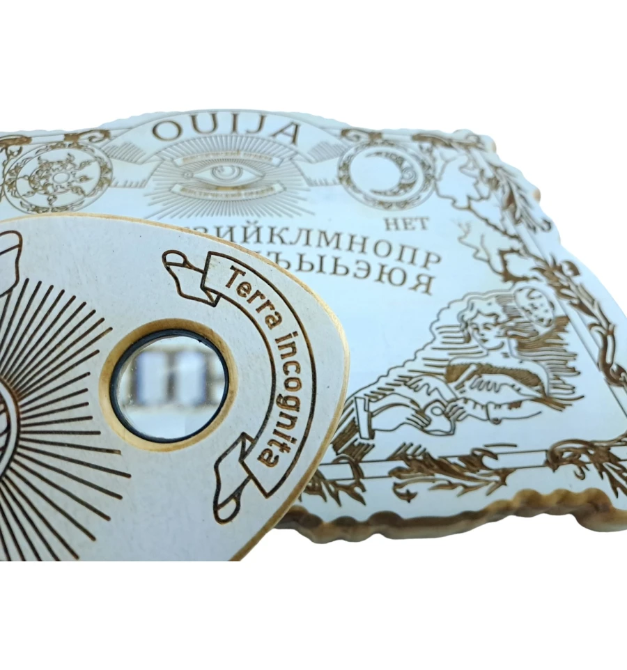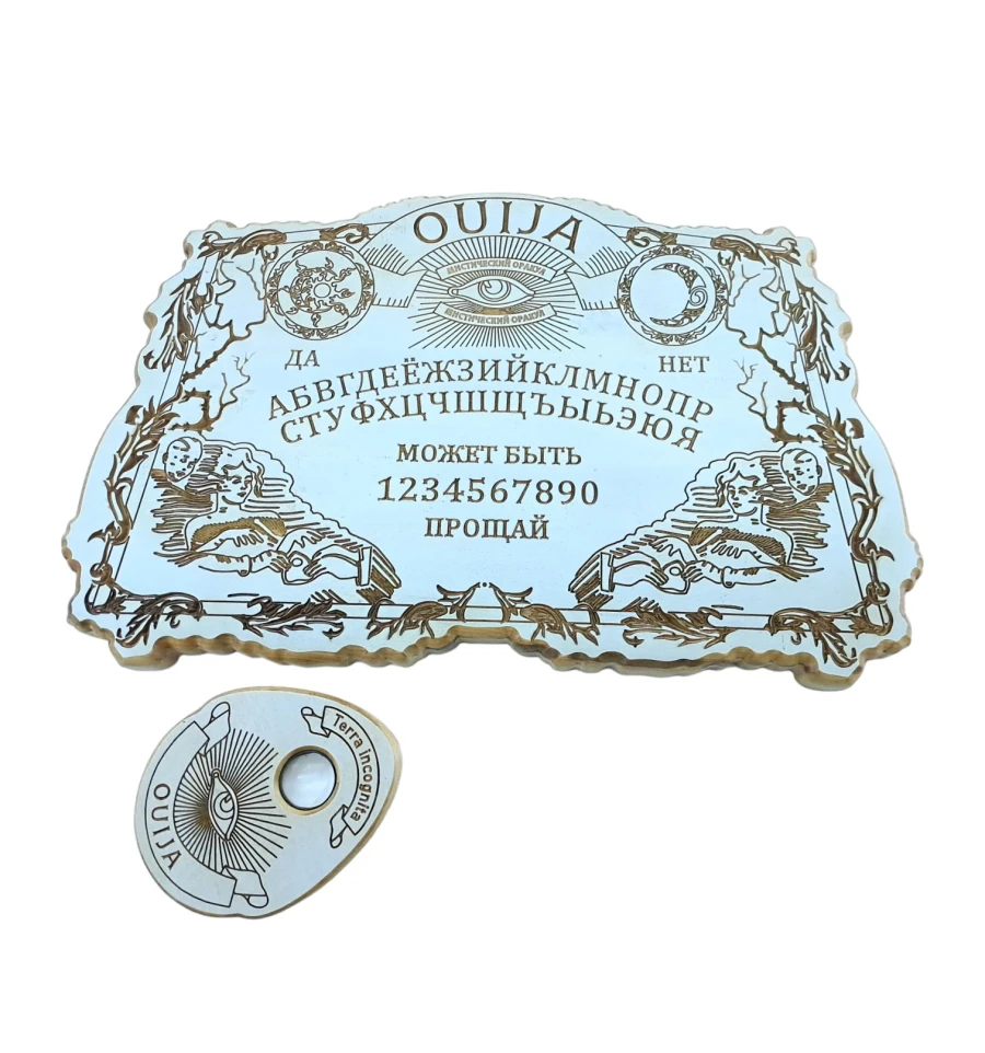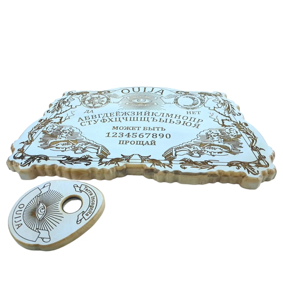 Резная спиритическая доска из дерева воспевает древние тайны с прекрасным античным влиянием. Каждая деталь внимательно вырезана, воссоздавая образы из прошлого. Лупа, встроенная в указку, позволяет разглядеть мельчайшие детали и загадочные символы, раскрывая перед вами тайны старинных времен. Этот предмет искусства станет не только инструментом для общения с иным миром, но и великолепным элементом декора.