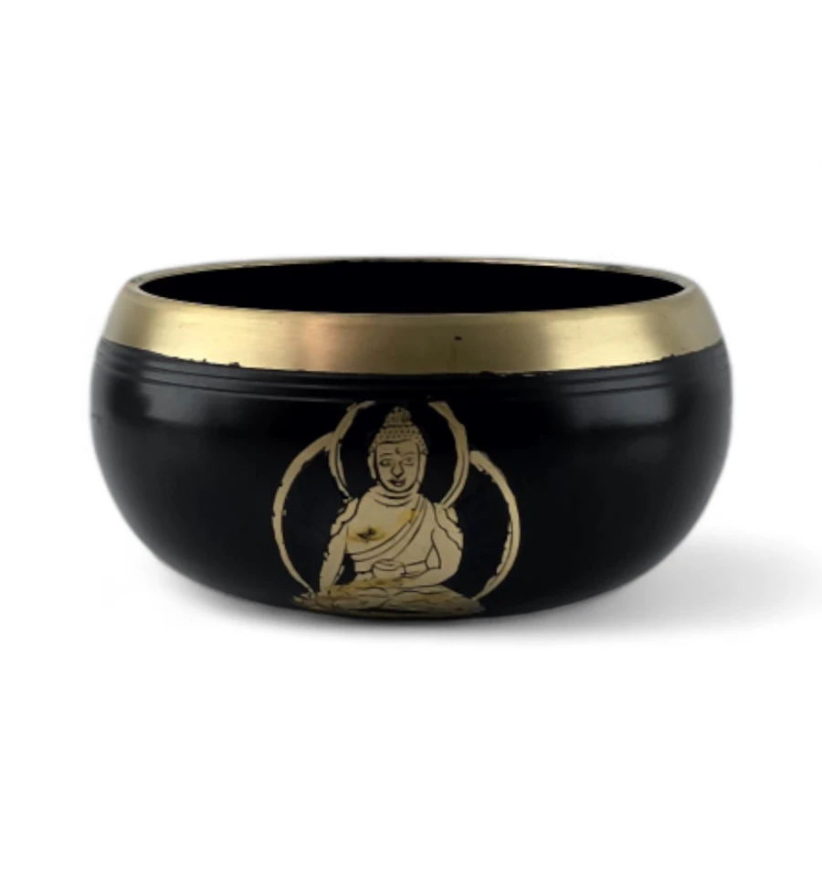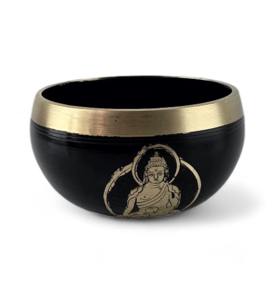 Чаша сделана из металла, который покрыт черной эмалью. Золотистое изображение Будды придает изделию благородный вид и подчеркивает его уникальность. Это не просто музыкальный инструмент, но и мощный символ, который может стать центром вашей духовной практики.