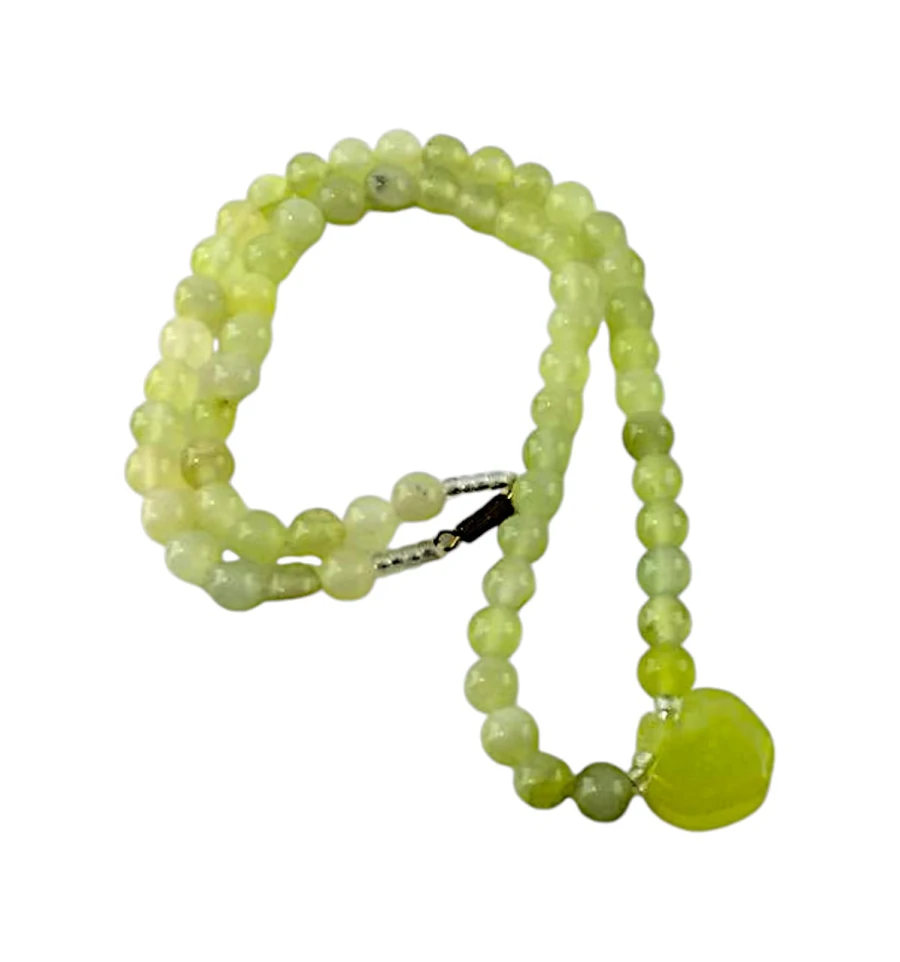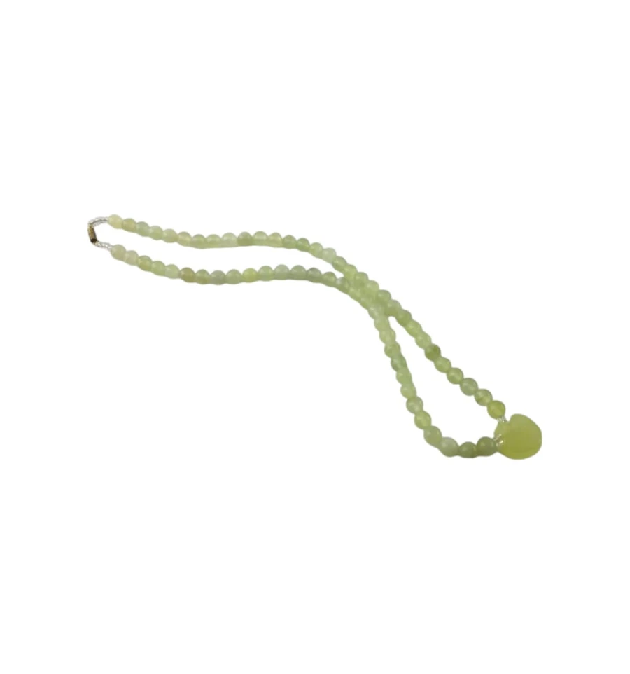 Это изысканное ожерелье изготовлено из нефрита, одного из самых почитаемых и ценных камней в китайской культуре. Нефрит символизирует мудрость, спокойствие и гармонию, и на протяжении веков используется как амулет для защиты и привлечения удачи.