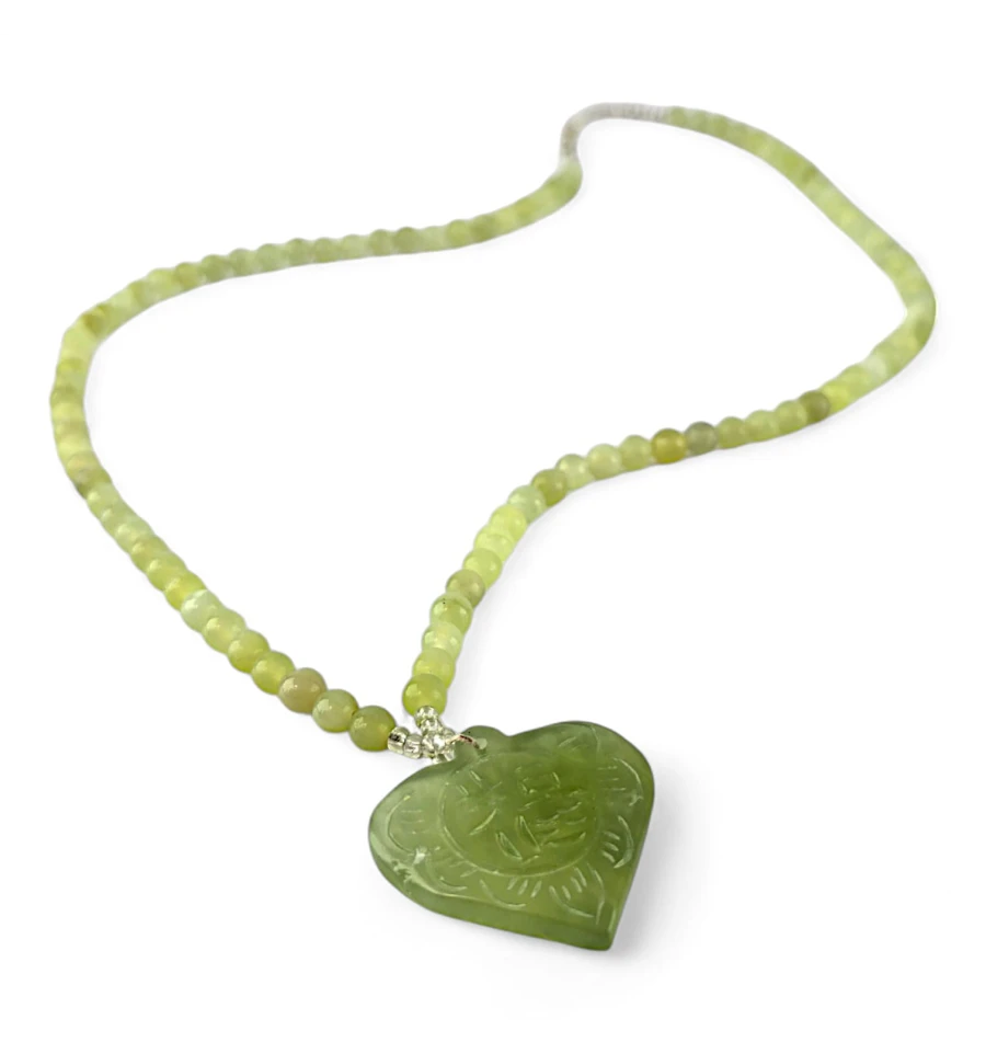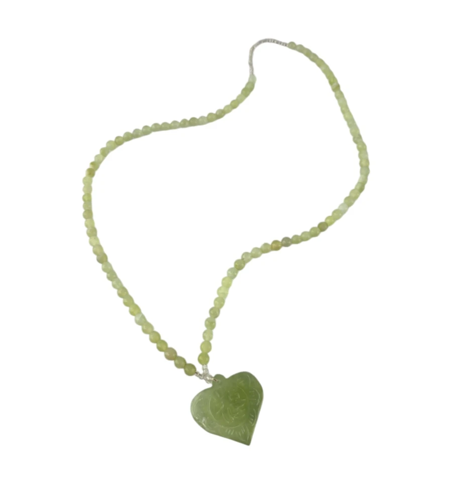 Это ожерелье идеально подходит для ежедневного ношения или особых случаев. Кулон виде сердца, привнесет в ваш образ силу и уверенность, а нежные нефритовые бусины добавят изысканности и утонченности.