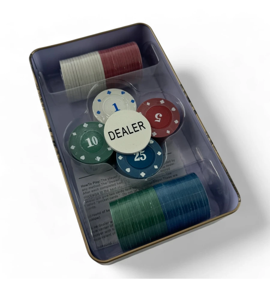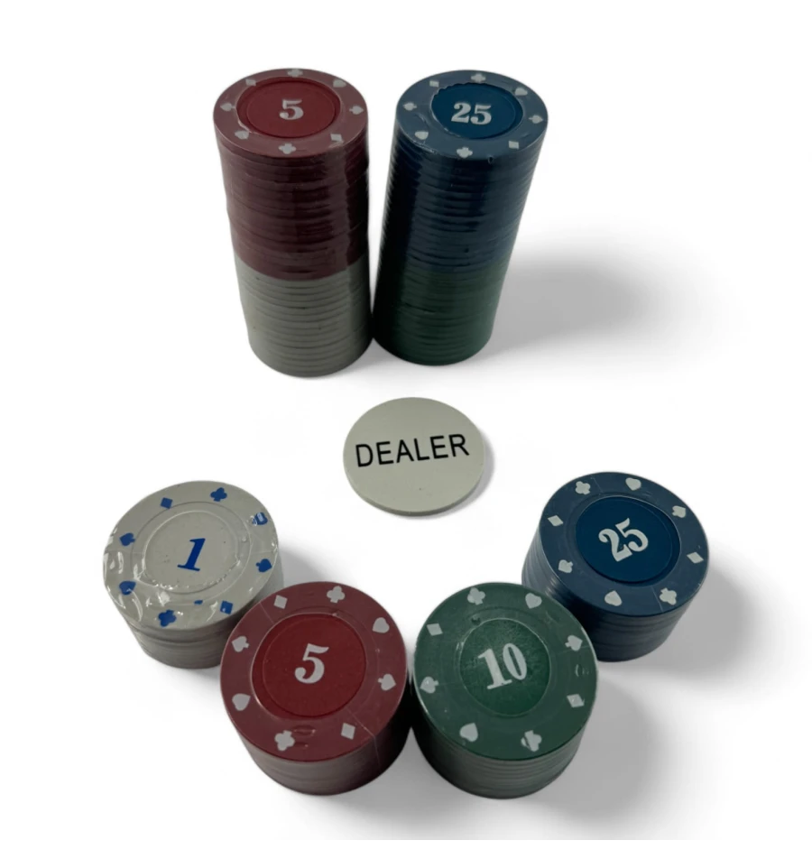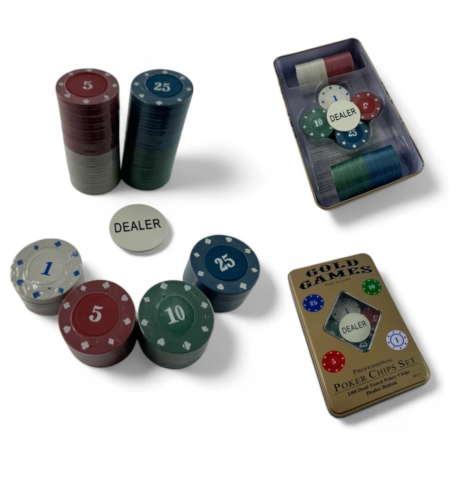 Количество фишек: В набор входит 100 фишек, что идеально подходит для небольших домашних игр.