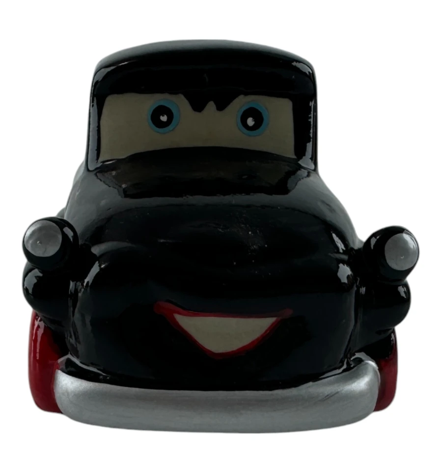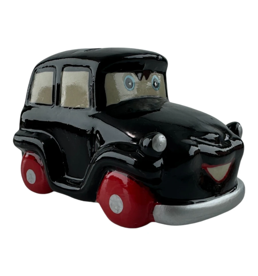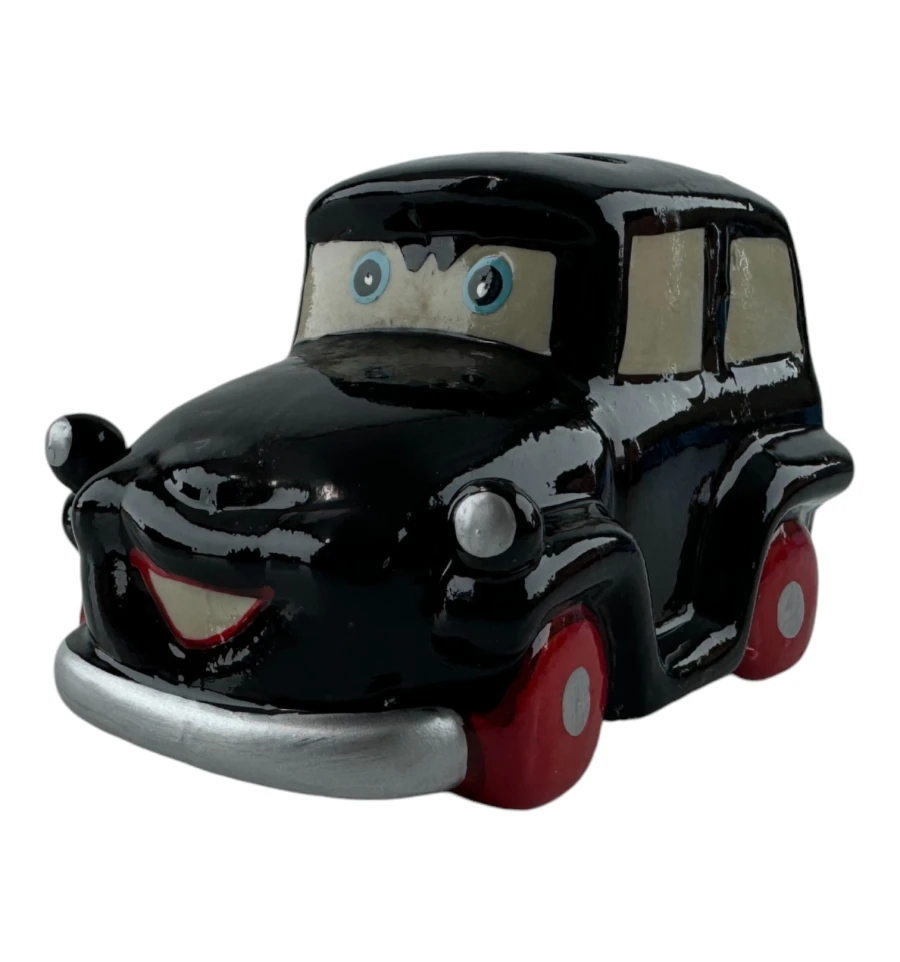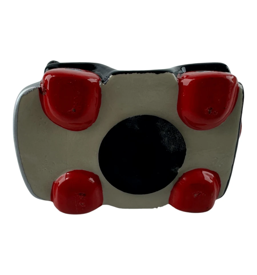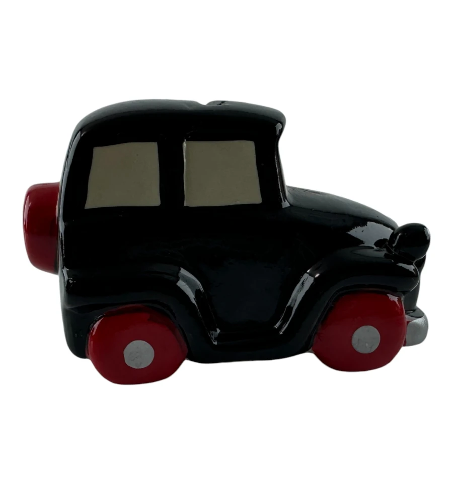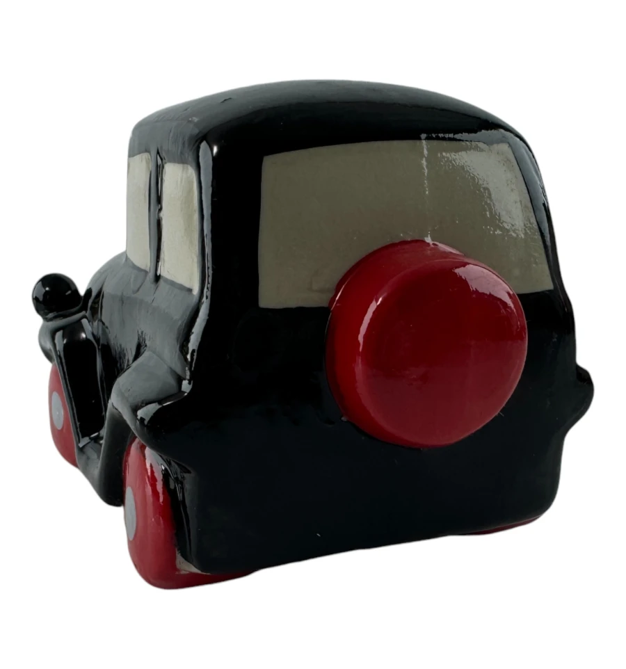 Эта очаровательная керамическая копилка выполнена в виде черного ретро-автомобиля с забавными глазами и широкой улыбкой. Прекрасный декоративный элемент и функциональный аксессуар для хранения мелочи. Изделие имеет съёмную резиновую вставку на дне, благодаря чему монетки можно легко достать, не разбивая копилку.