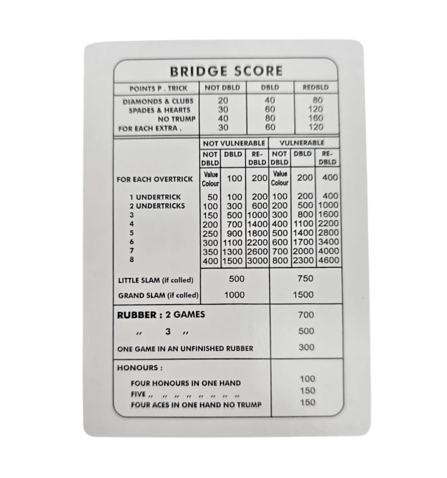 Количество карт: 54 (включая двух джокеров, или правила бриджа, или календарь)