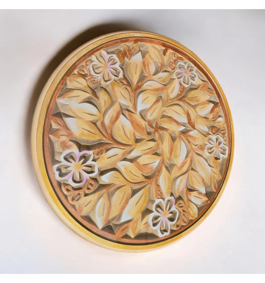 Столешница украшена тонкой резьбой в стиле прованс, которая подчёркивает природную текстуру древесины и добавляет изделию особый шарм. Армированное стекло придает столу современный акцент, сохраняя при этом его изысканный внешний вид и защищая деревянную поверхность от повреждений.