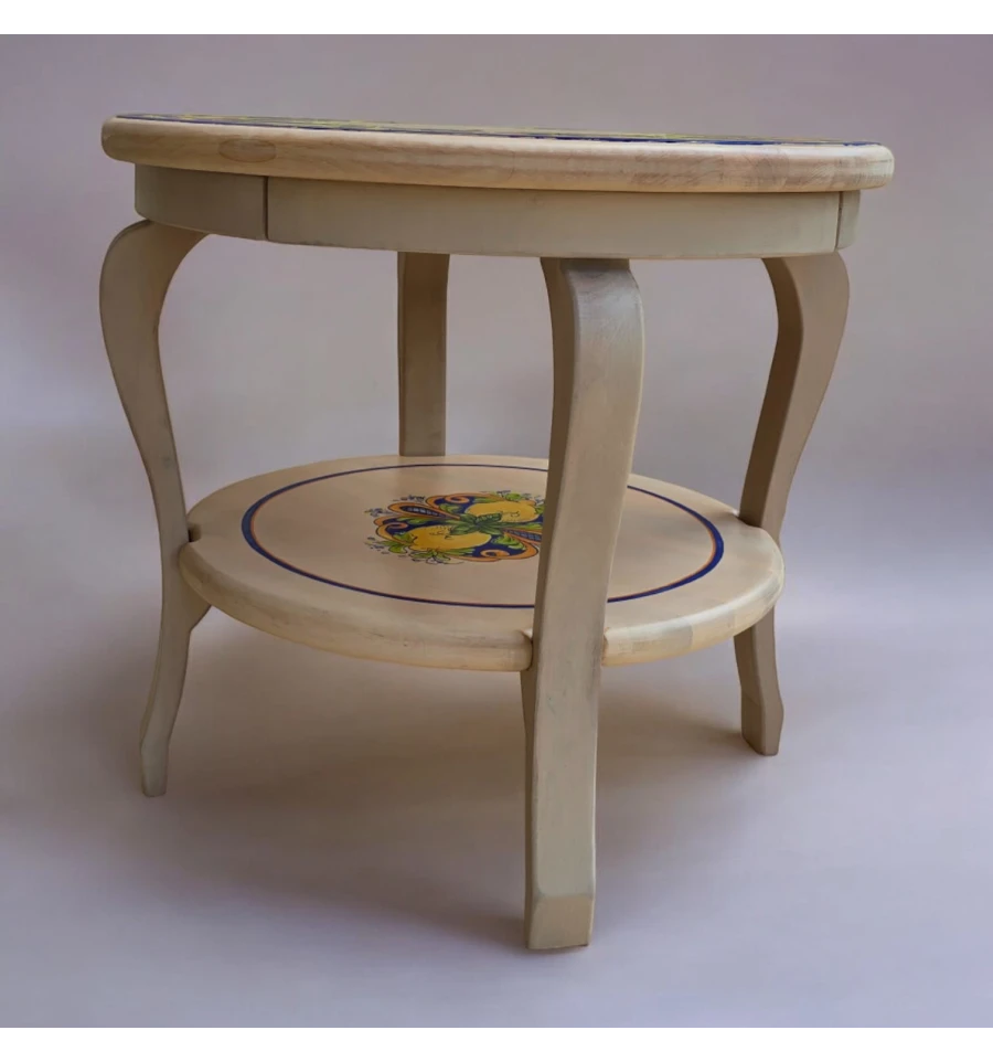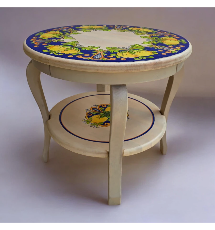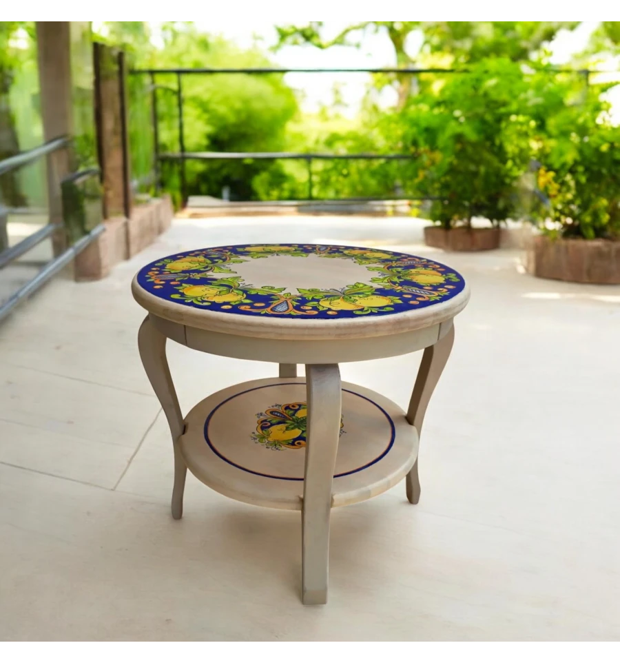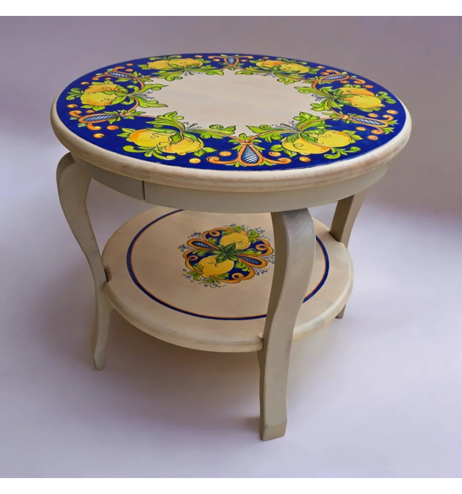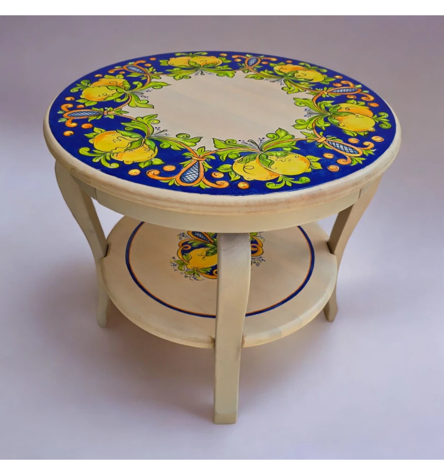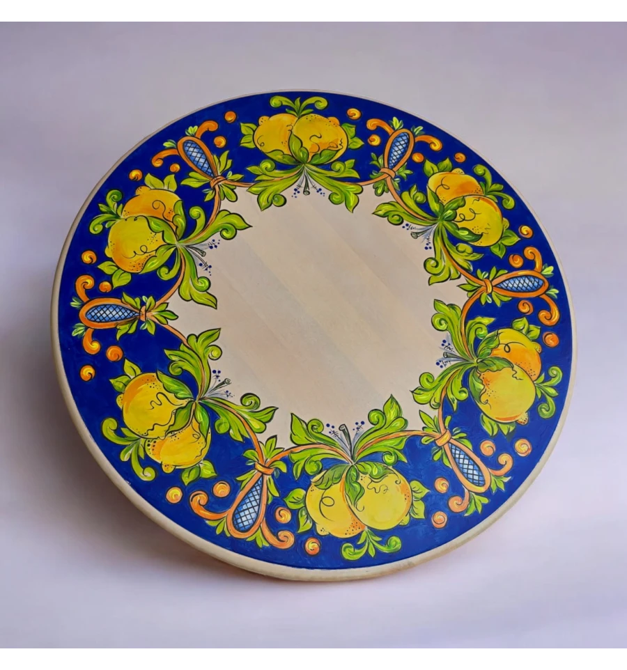 Стол украшен традиционными итальянскими орнаментами, которые придают ему уникальность и выразительность. Яркие лимоны и нежные листья на синем фоне создают ощущение свежести и лёгкости, перенесут вас в солнечную Италию.