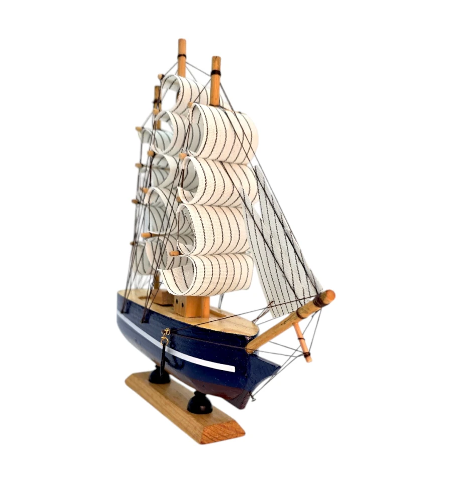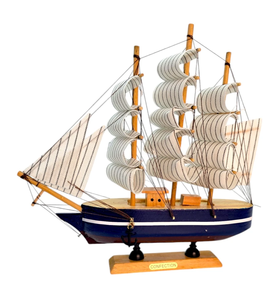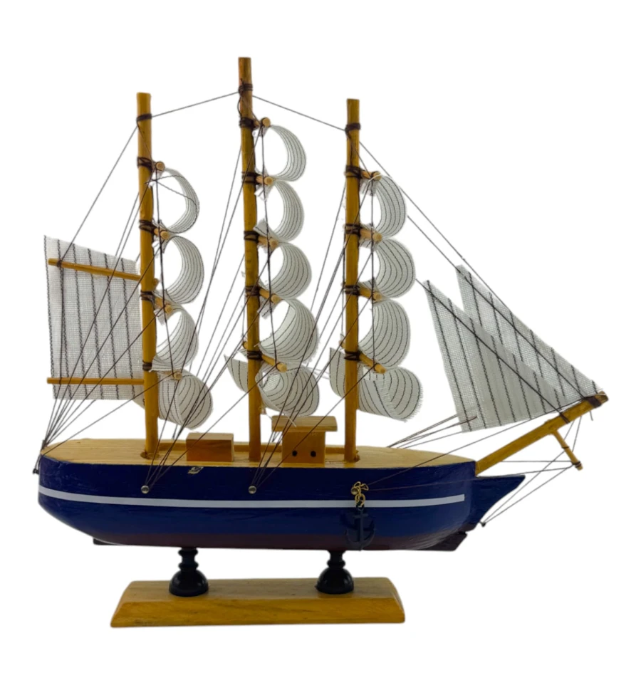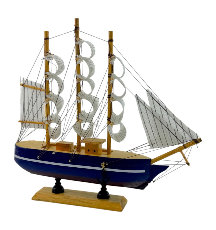 Деревянный парусник на подставке. Этот элегантный парусник - настоящий символ свободы и мечты о далеких морских путешествиях. Его деревянный корпус с синей полосой, со светлыми парусами призывает к новым горизонтам и приключениям. Парусник на подставке станет не только изысканным элементом вашего интерьера, но и напоминанием о бескрайних океанах и незабываемых моментах. Его компактные размеры делают его идеальным для размещения на столе, полке или в другом уголке вашего дома. Два якоря придают этой композиции дополнительный морской шарм и символизируют стабильность и верность своим идеалам. Этот парусник также может стать замечательным подарком для всех, кто разделяет страсть к морским темам и мечтает о приключениях на широких водах. Он символизирует свободу, мечты и бесконечные возможности. Погрузитесь в мир морской романтики с нашим парусником. Он будет напоминать вам о великих путешествиях и дарить вдохновение каждый день.