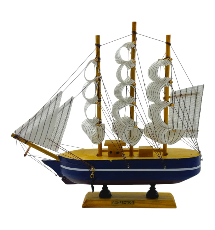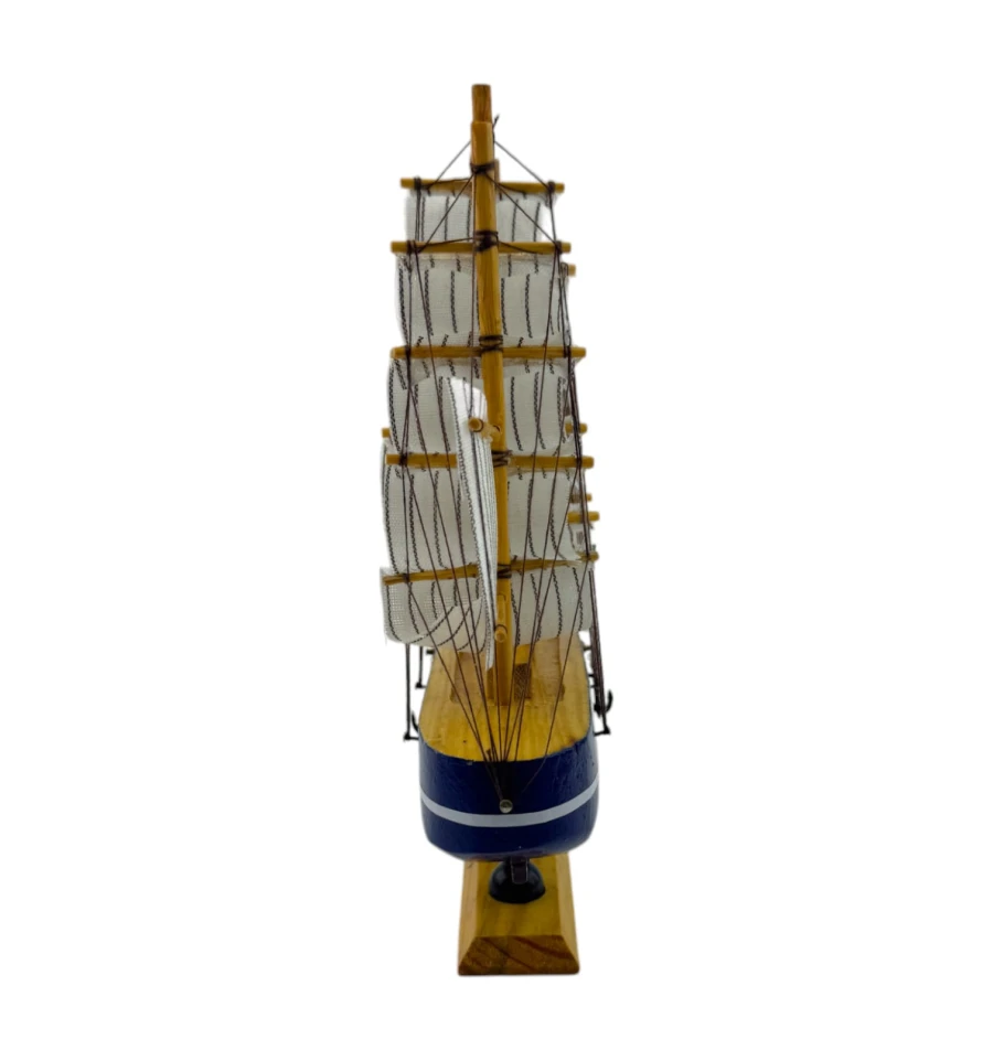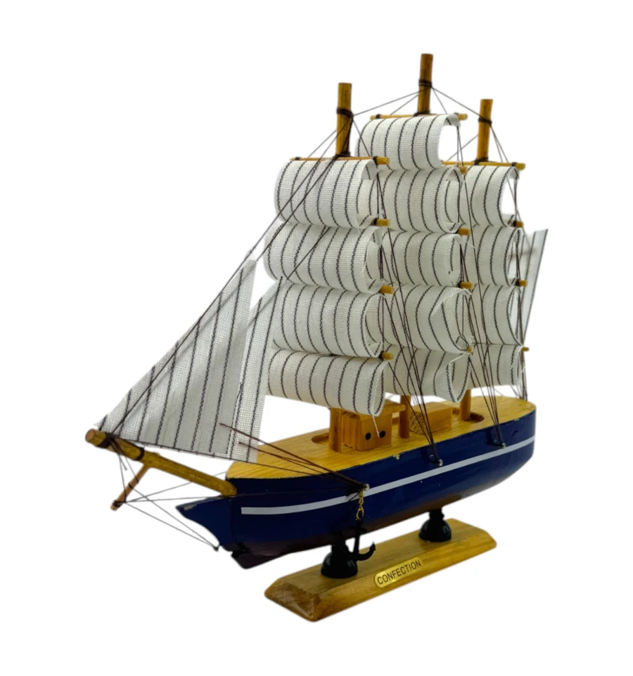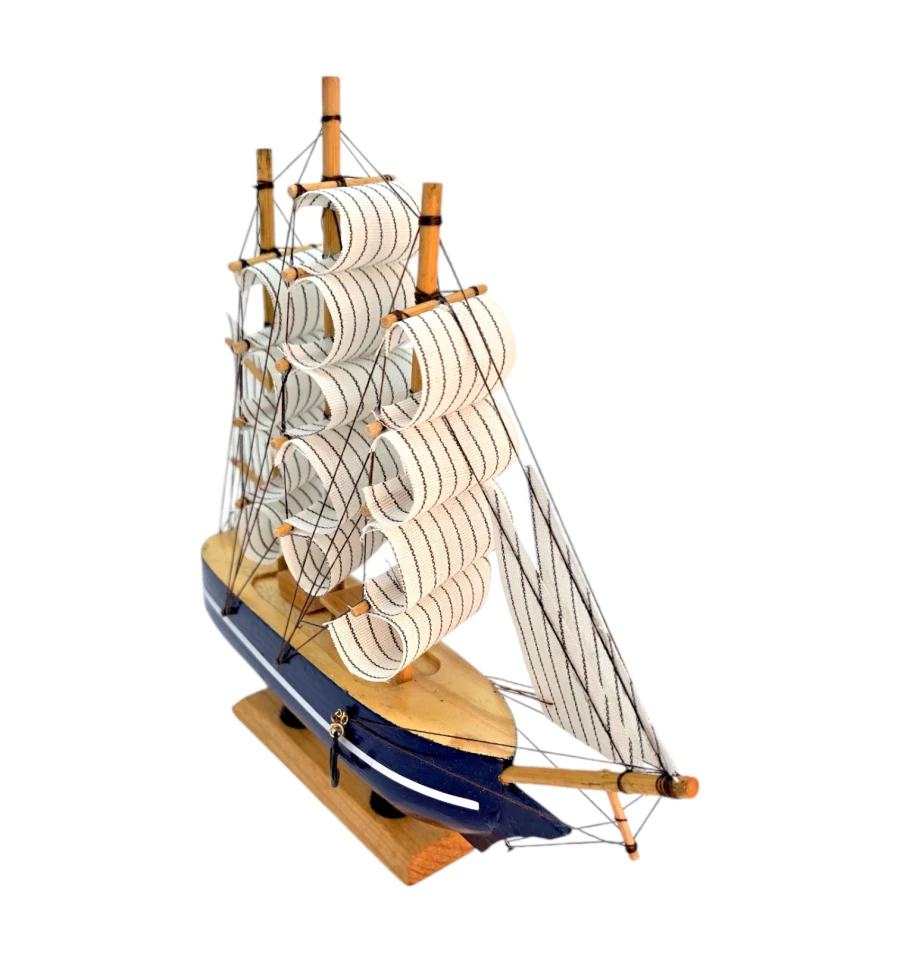Деревянный парусник на подставке. Этот элегантный парусник - настоящий символ свободы и мечты о далеких морских путешествиях. Его деревянный корпус с синей полосой, со светлыми парусами призывает к новым горизонтам и приключениям. Парусник на подставке станет не только изысканным элементом вашего интерьера, но и напоминанием о бескрайних океанах и незабываемых моментах. Его компактные размеры делают его идеальным для размещения на столе, полке или в другом уголке вашего дома. Два якоря придают этой композиции дополнительный морской шарм и символизируют стабильность и верность своим идеалам. Этот парусник также может стать замечательным подарком для всех, кто разделяет страсть к морским темам и мечтает о приключениях на широких водах. Он символизирует свободу, мечты и бесконечные возможности. Погрузитесь в мир морской романтики с нашим парусником. Он будет напоминать вам о великих путешествиях и дарить вдохновение каждый день.