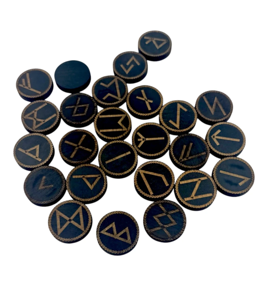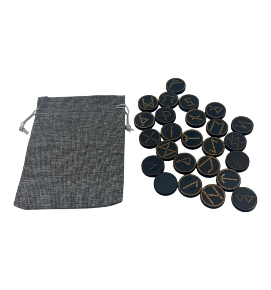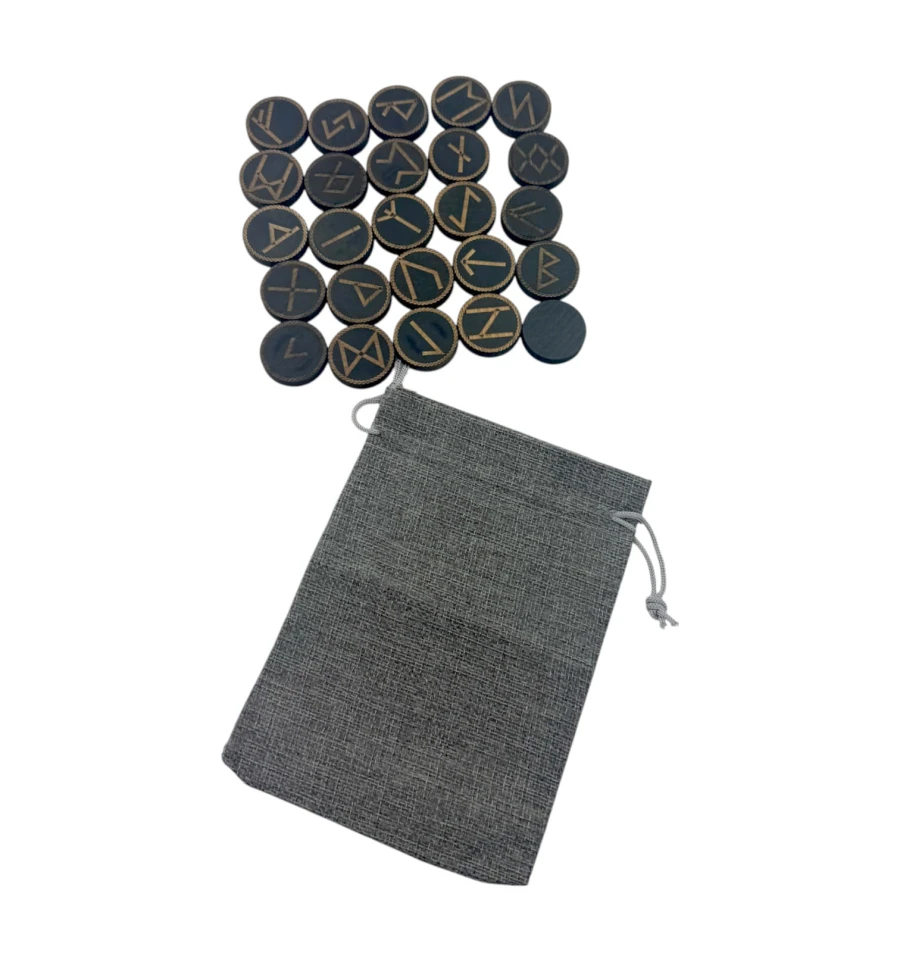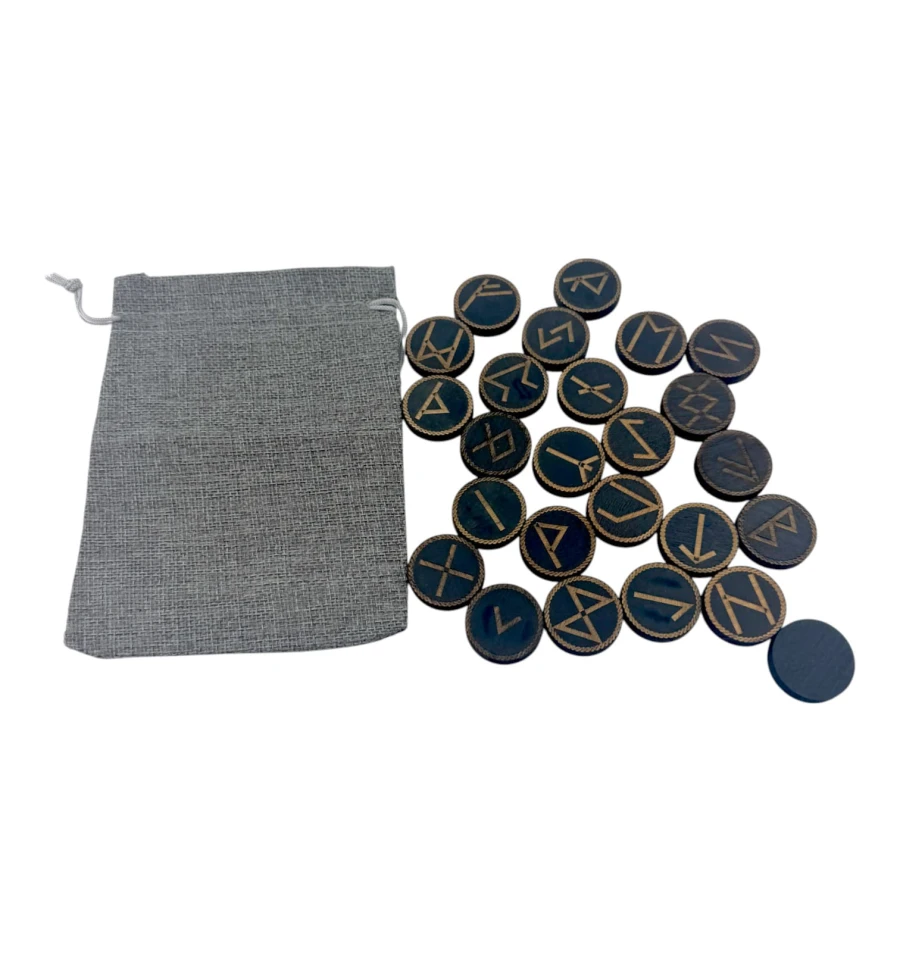 Руны "Скандинавские" круглые, темные, 25 рун (d-3,1 см ,h-0,7 см) с мешочком ,массив дерева