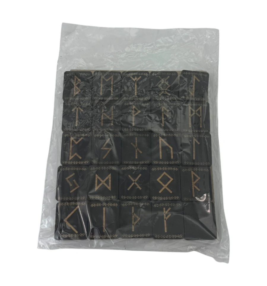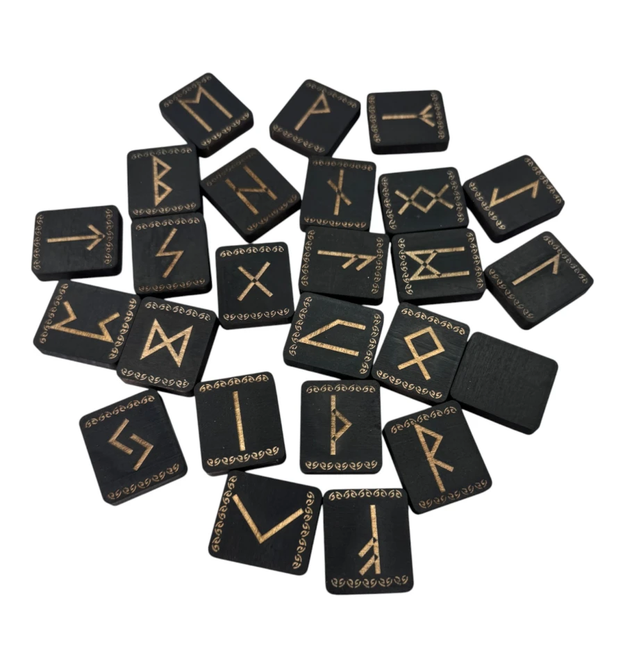 Руны из ольхи,темные с орнаментом (31*27*7мм), покрытые эмалью.