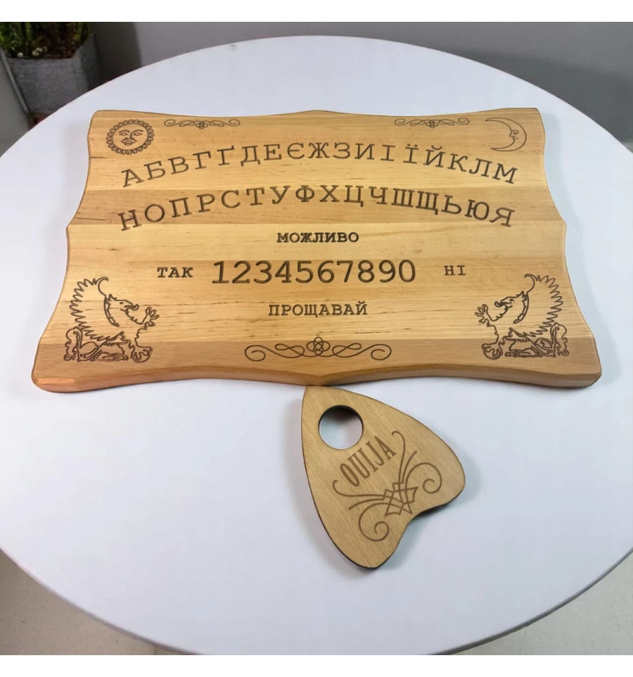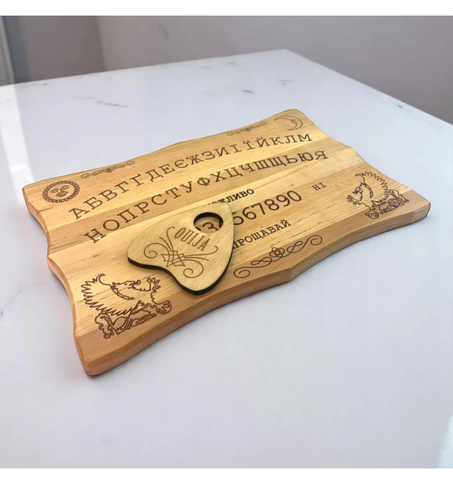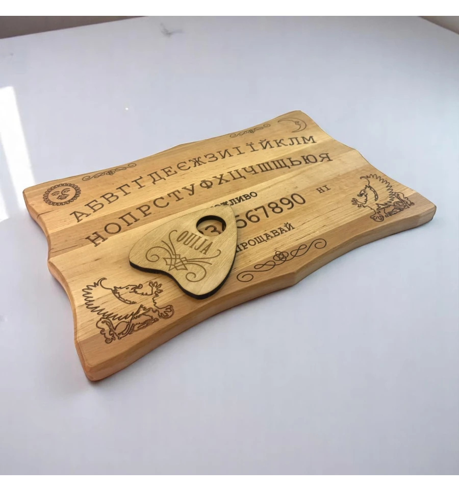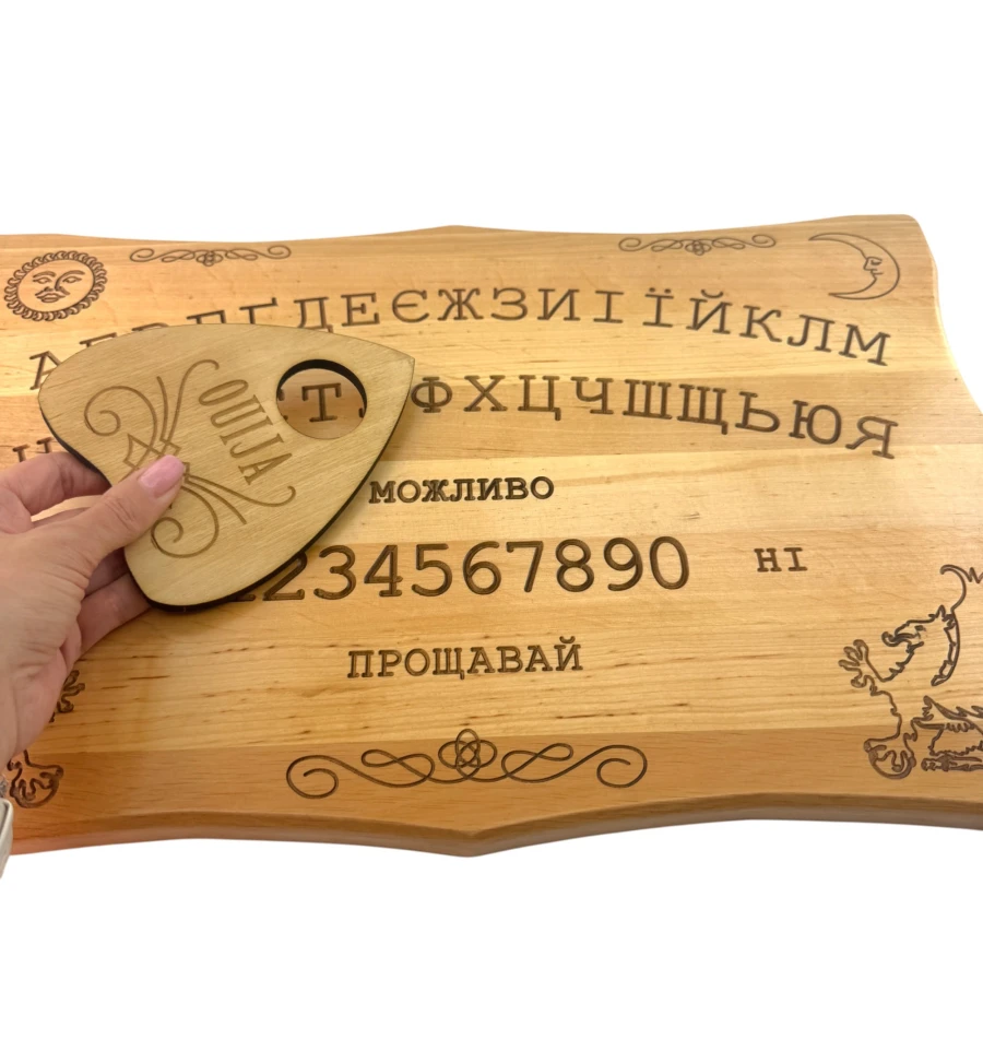 Спиритическая доска OUIJA "Эксклюзивная" светлая, на украинском языке (46×29×1,8см),резная,массив дерева