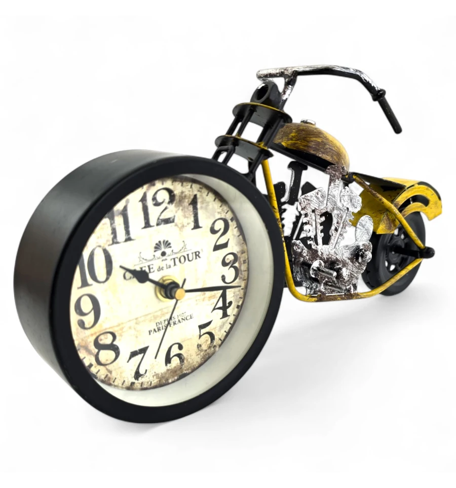 Стильный и оригинальный аксессуар с настольными часами "Мотоцикл" в ярком желтом исполнении! Эти часы не только показывают время, но и являются уникальным элементом декора для вашего офиса или дома.