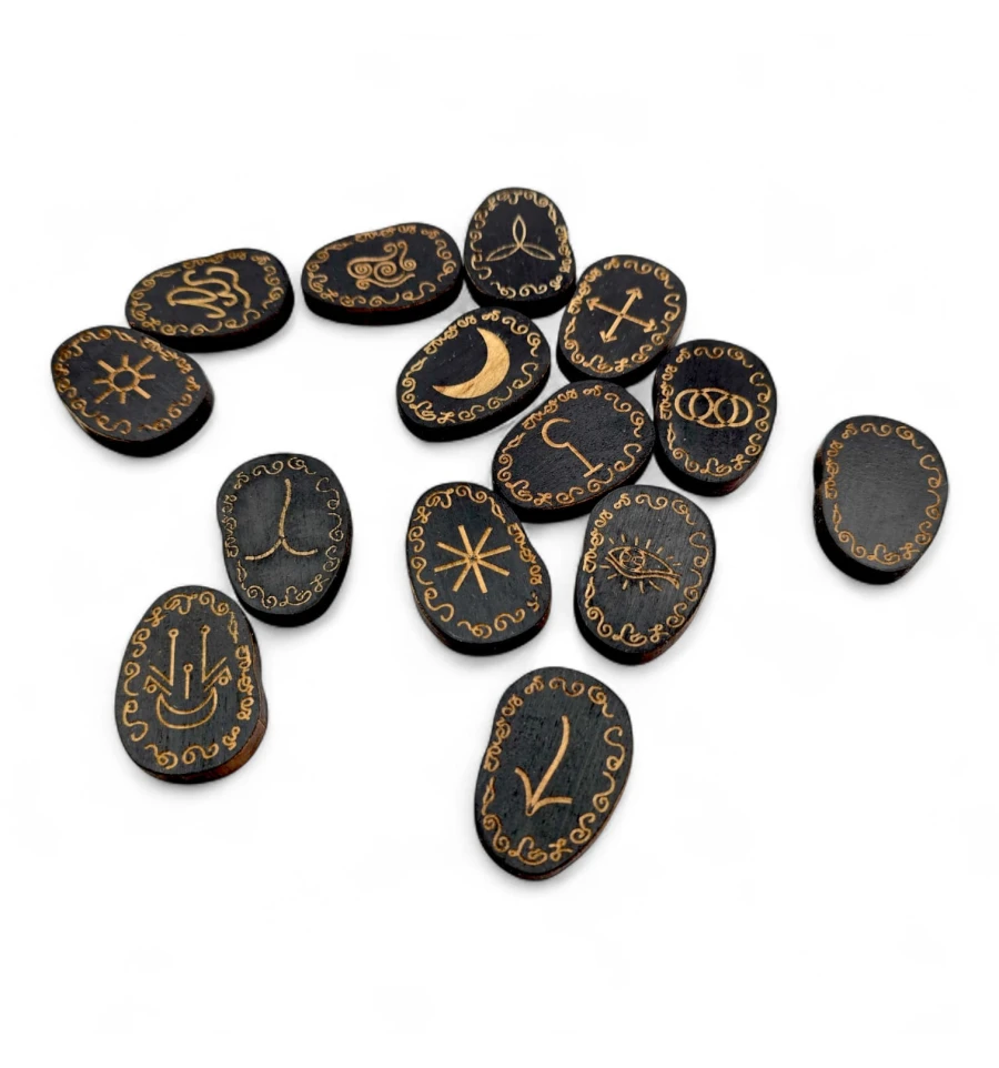 Откройте завесу тайных знаний с набором ведьминых рун, выполненных вручную из благородной ольхи. Эти магические символы помогут вам заглянуть в будущее, найти ответы на важные вопросы и настроиться на энергетику вселенной.