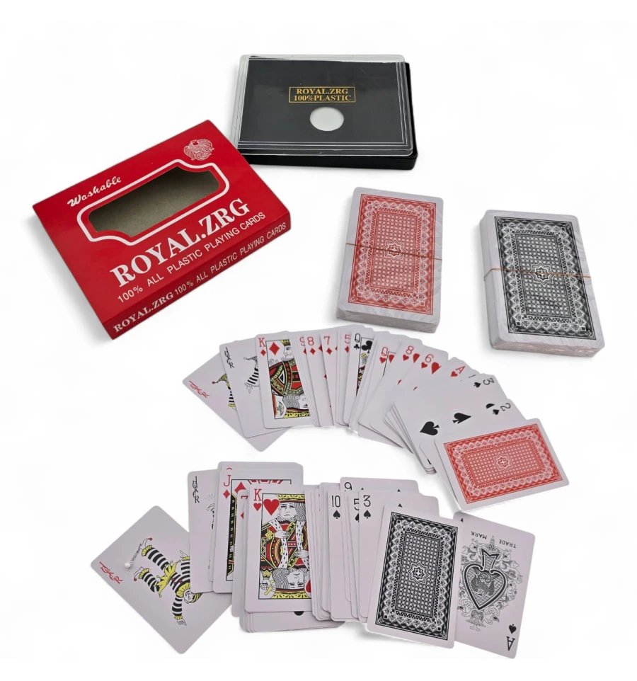 Теги: пластиковые карты, игральные карты пластик, карты для покера, колода карт пластик, ROYAL ZRG, 2 колоды карт, покерный формат, карты с джокерами, набор карт в кейсе, моющиеся карты
